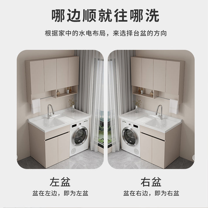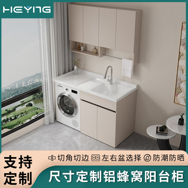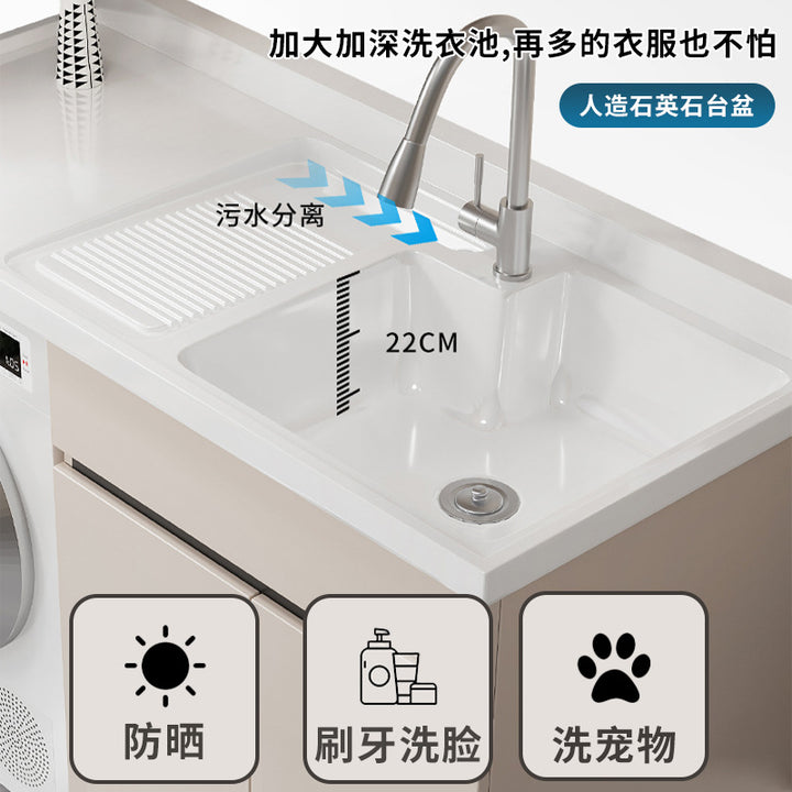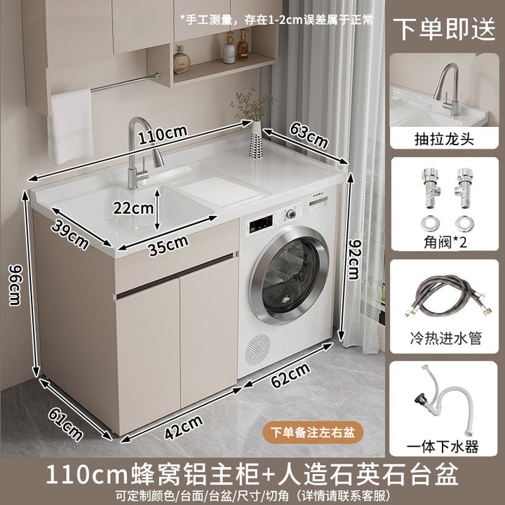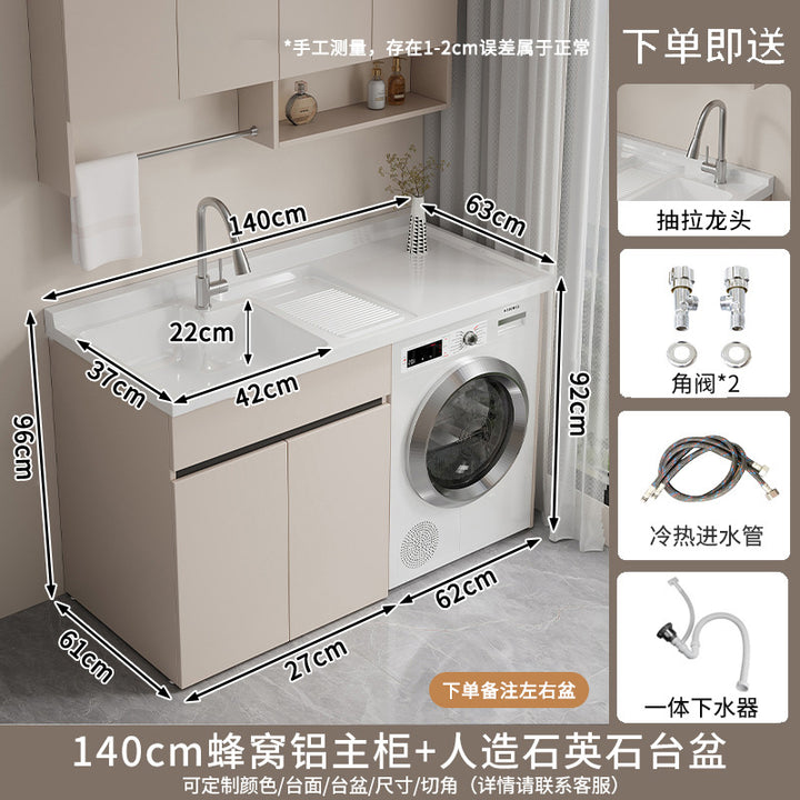 Thickened all-aluminum honeycomb washing machine cabinet, balcony integrated cabinet combination with washboard, modern simple quartz stone basin