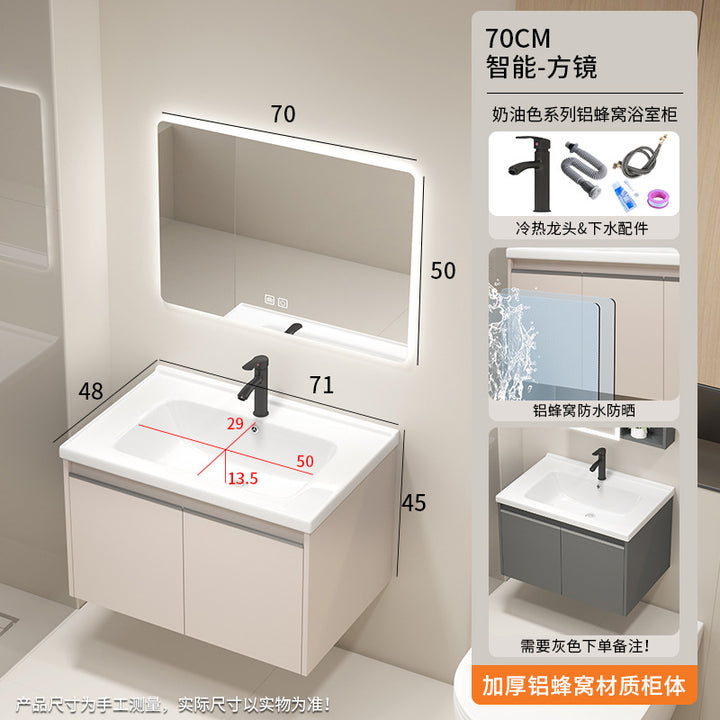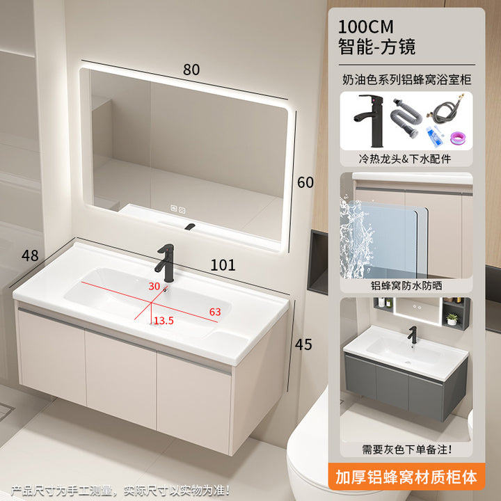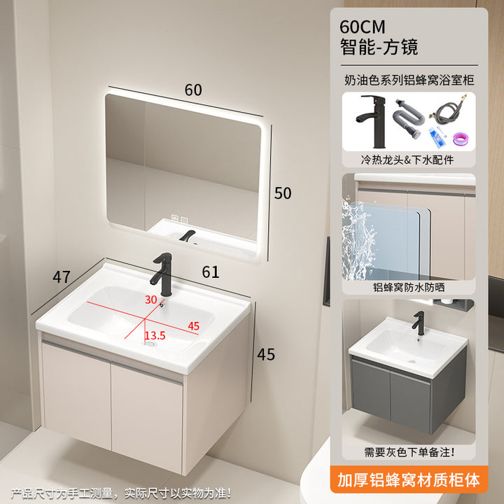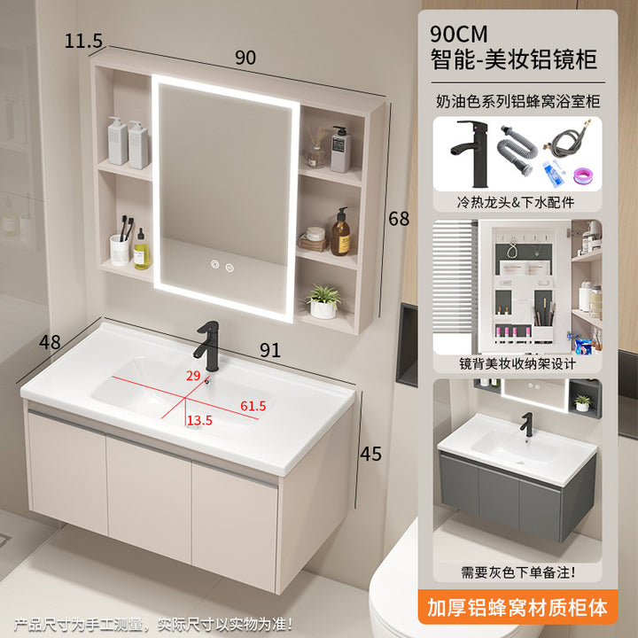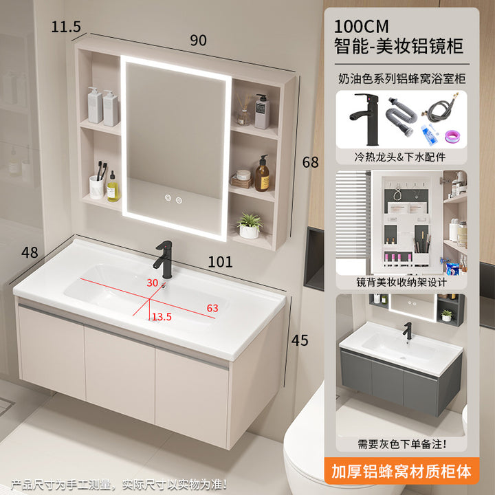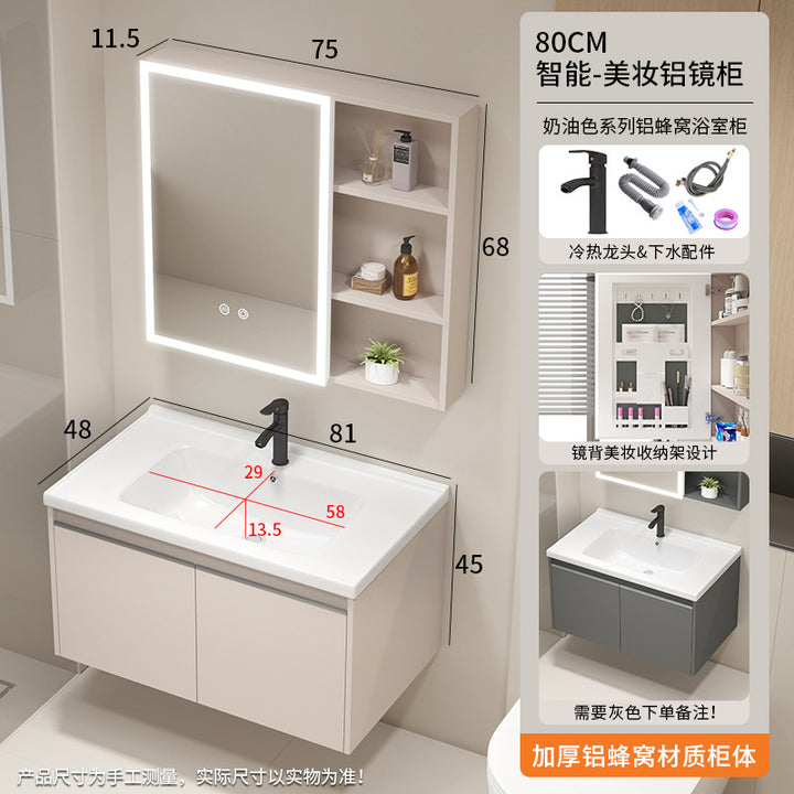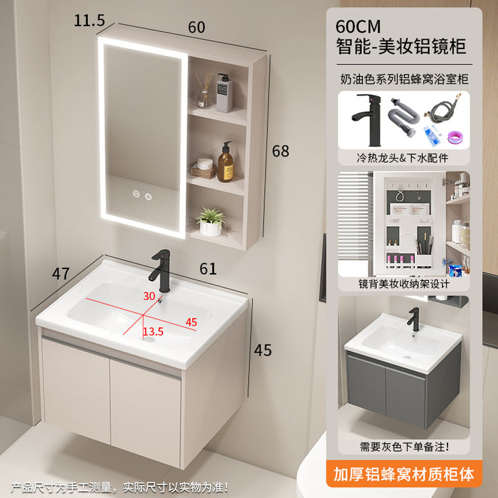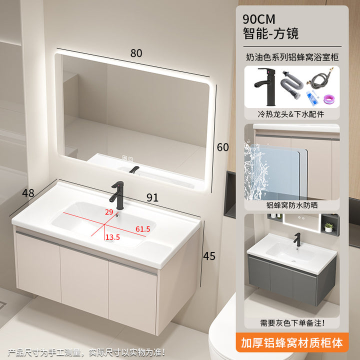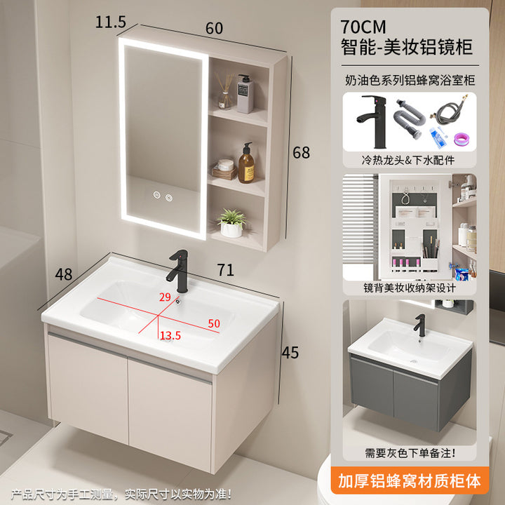 Thickened aluminum honeycomb bathroom cabinet integrated ceramic basin cabinet bathroom sink smart mirror cabinet combination waterproof and moistu...
