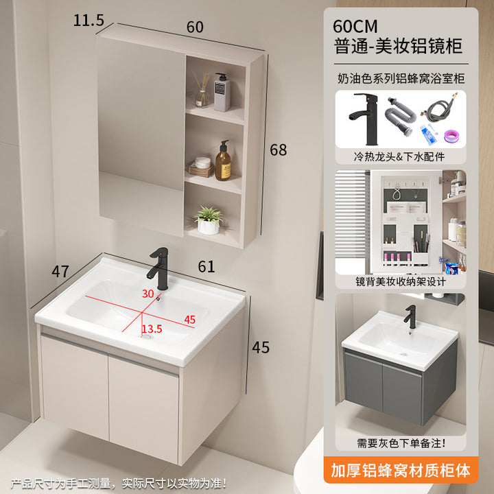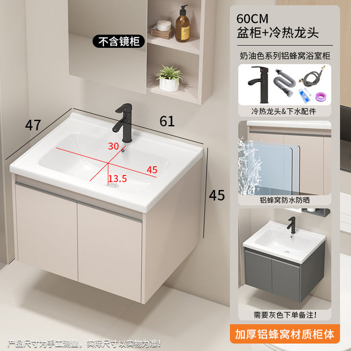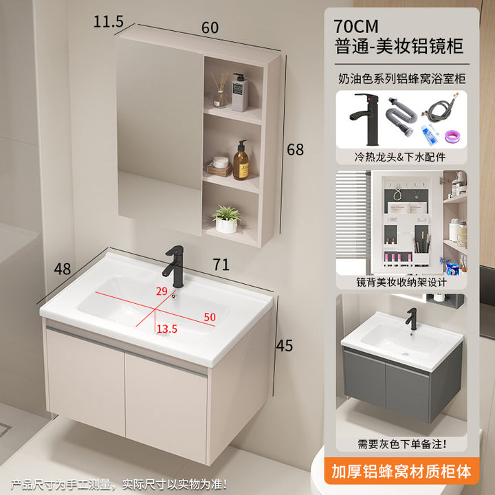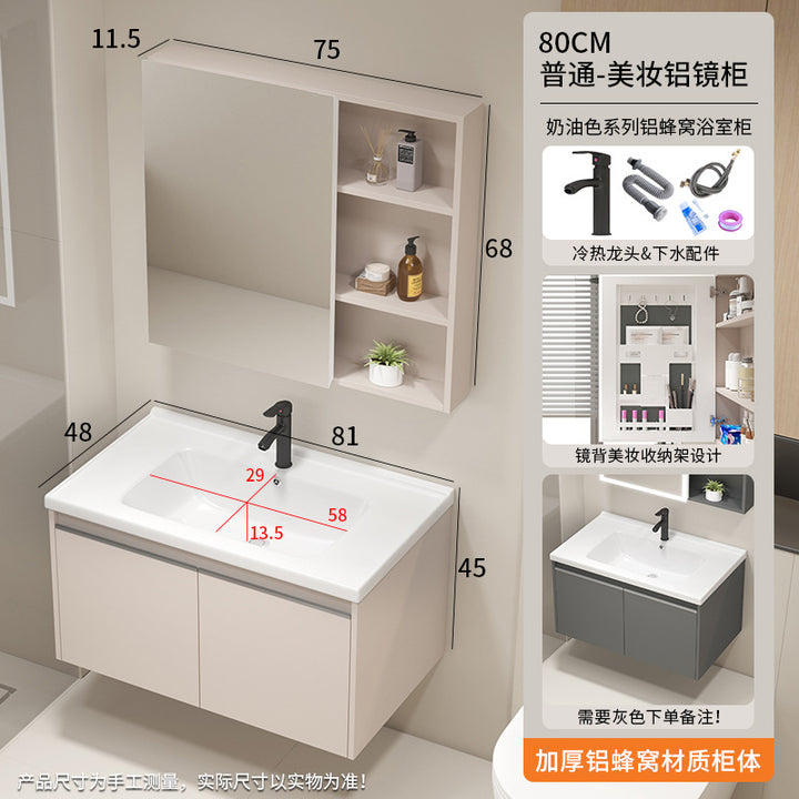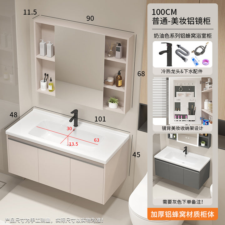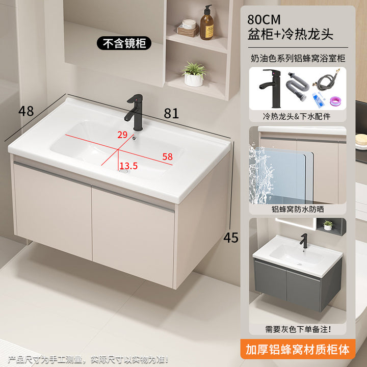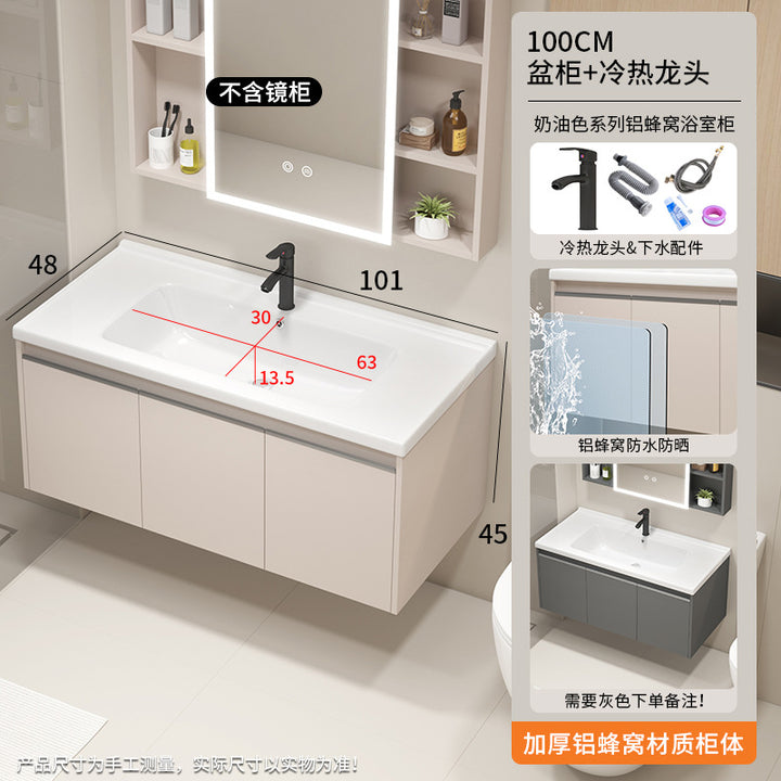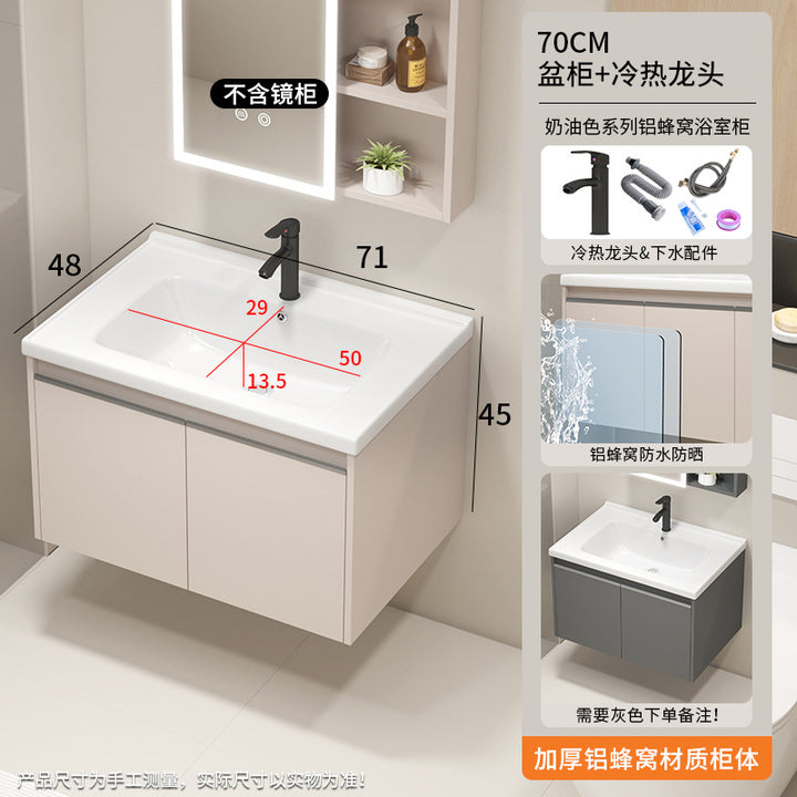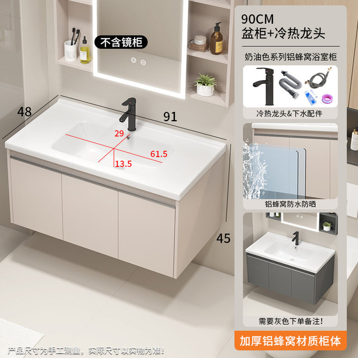 Thickened aluminum honeycomb bathroom cabinet integrated ceramic basin cabinet bathroom sink smart mirror cabinet combination waterproof and moistu...