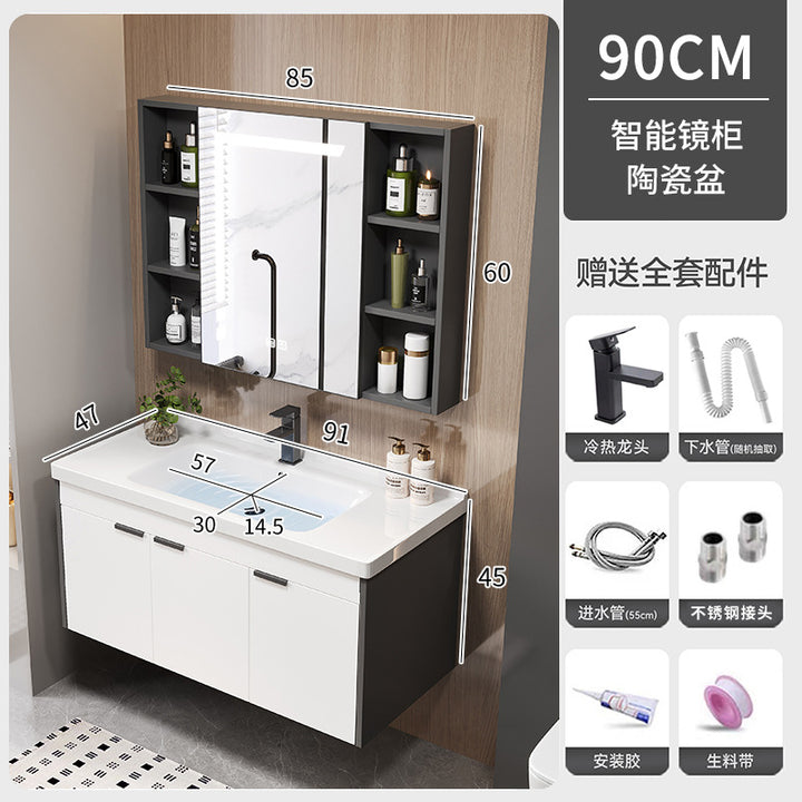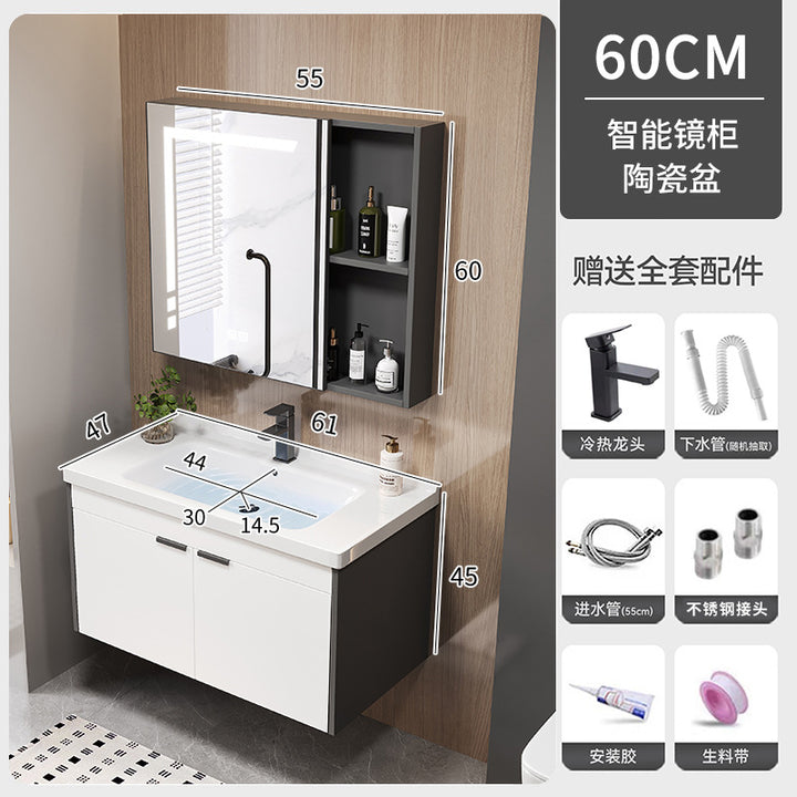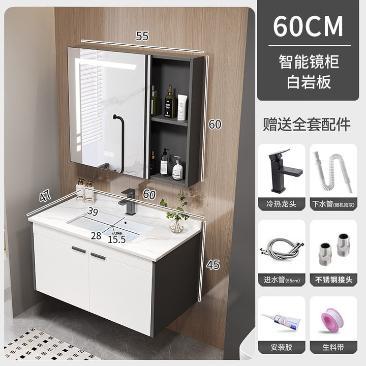 Thickened aluminum honeycomb bathroom cabinet small apartment 40 wide washbasin countertop integrated smart mirror cabinet wash basin cabinet combi...