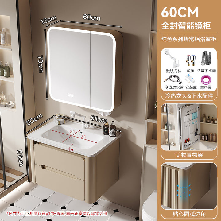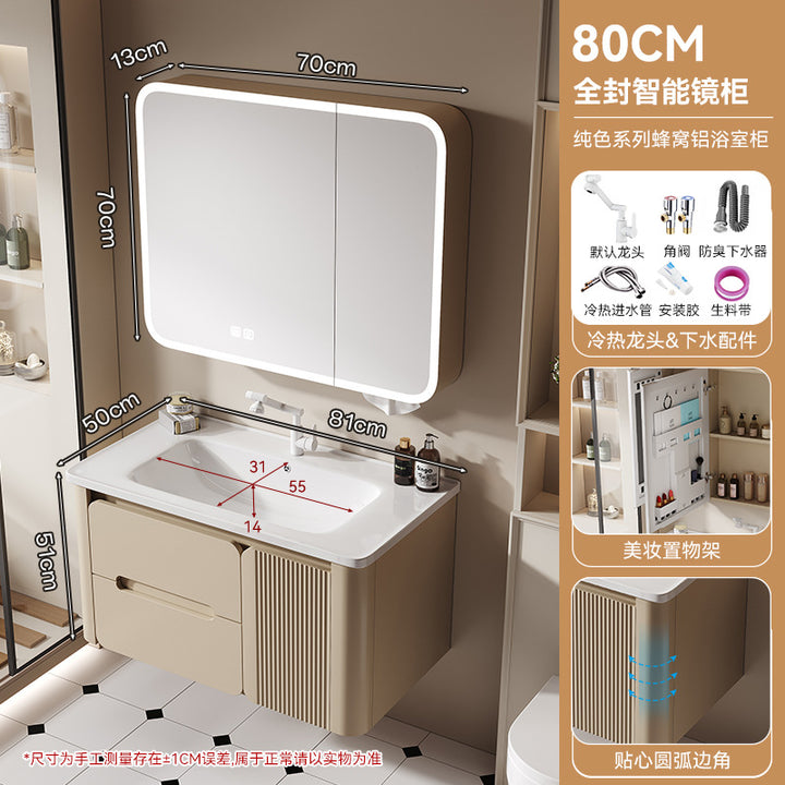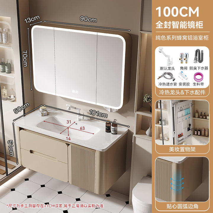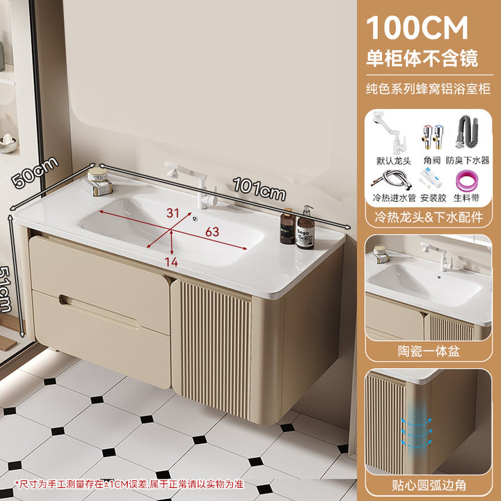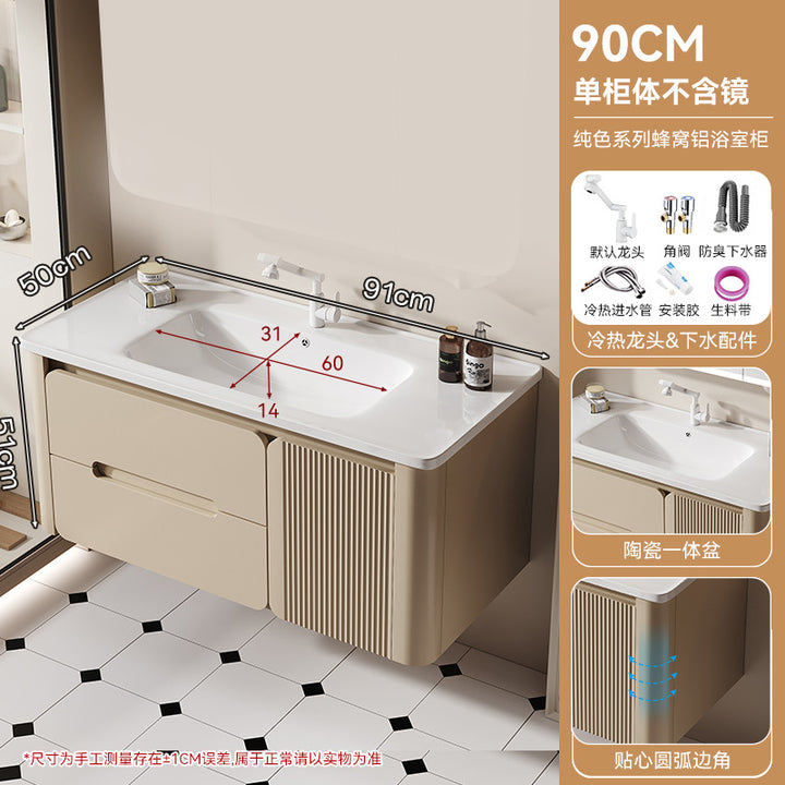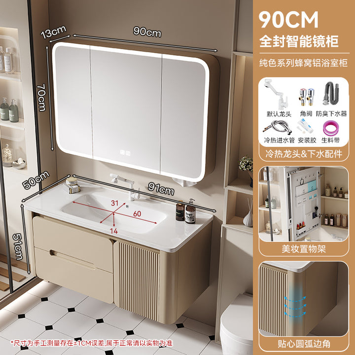 Thickened honeycomb aluminum bathroom cabinet door panel paint arc wash basin cabinet combination bathroom cabinet ceramic integrated basin