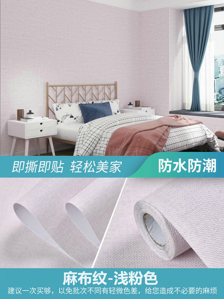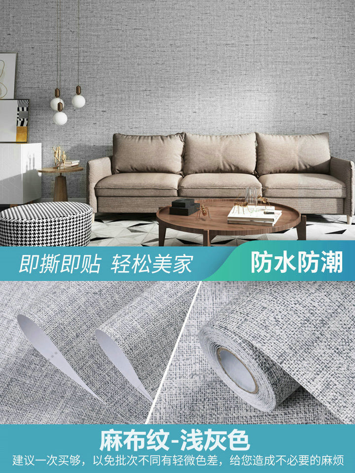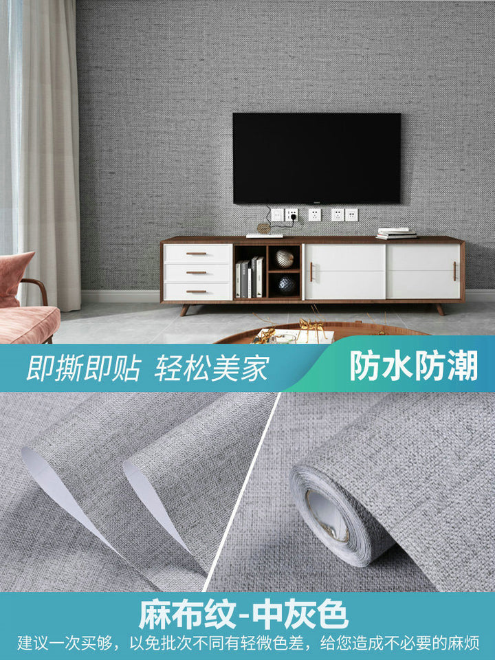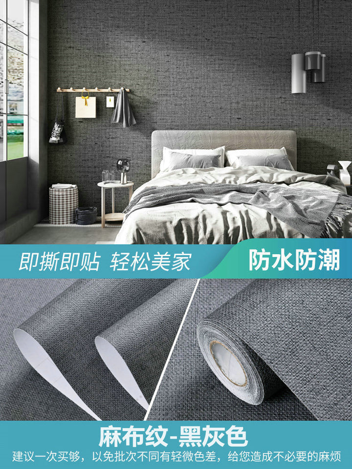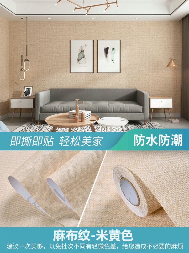 Thickened linen pattern odorless waterproof moisture-proof wallpaper self-adhesive bedroom living room background wall wallpaper decorative desktop...