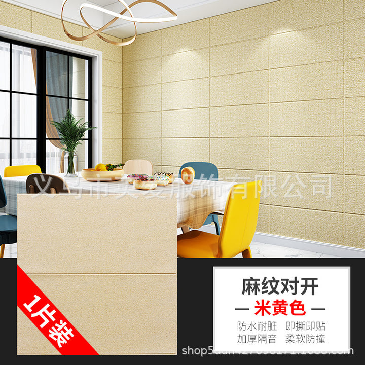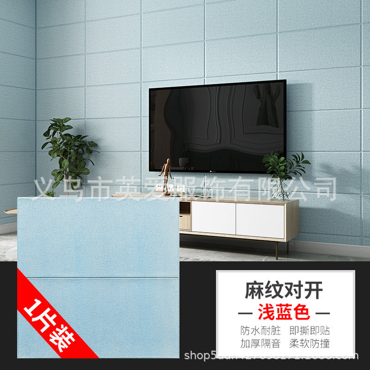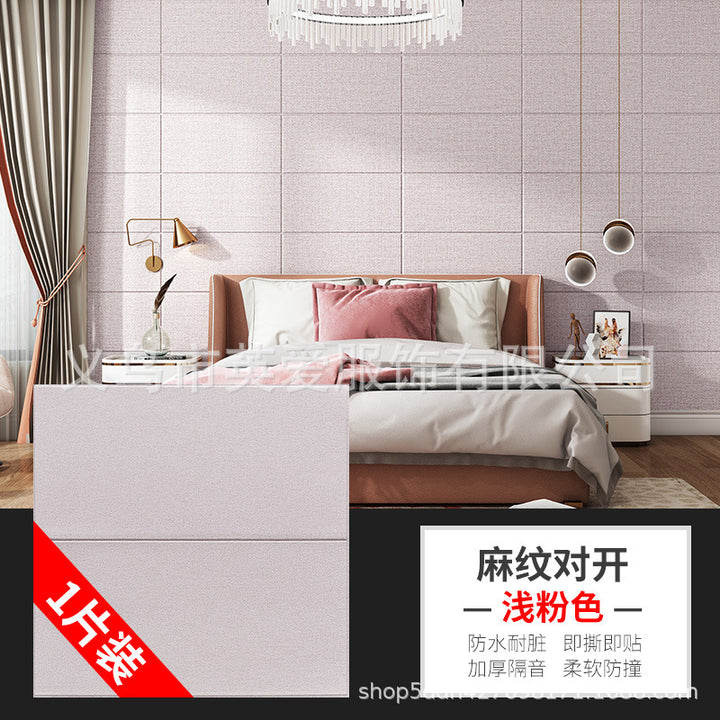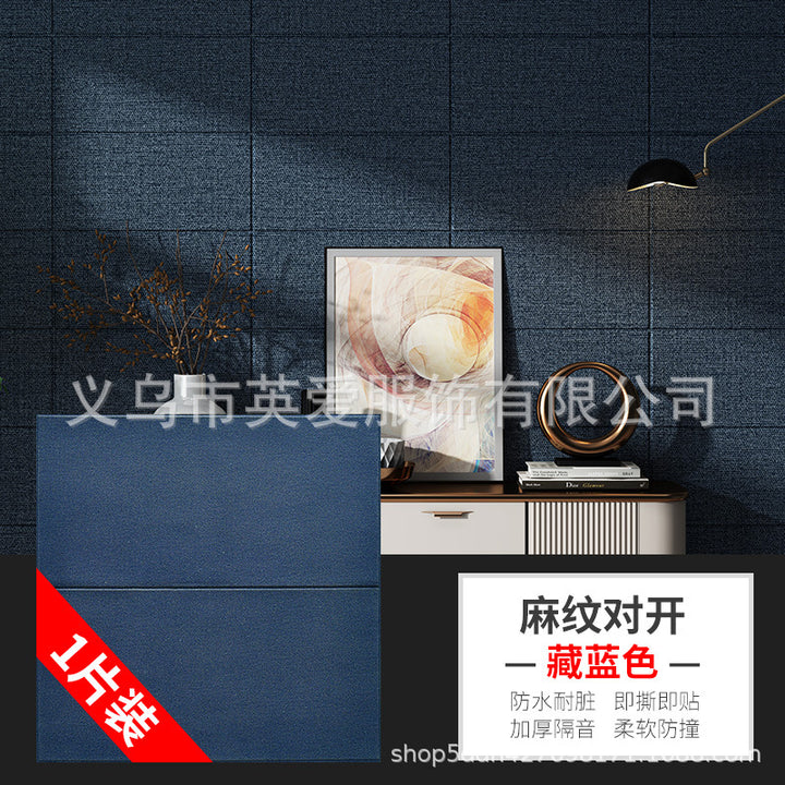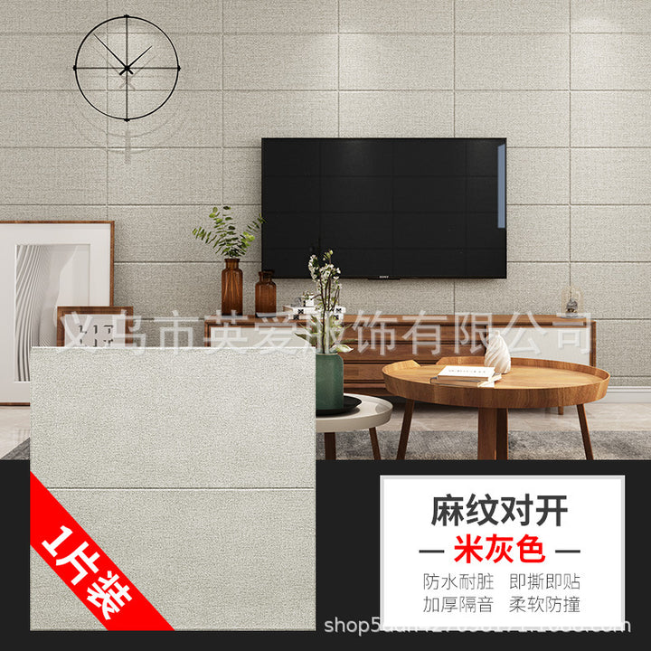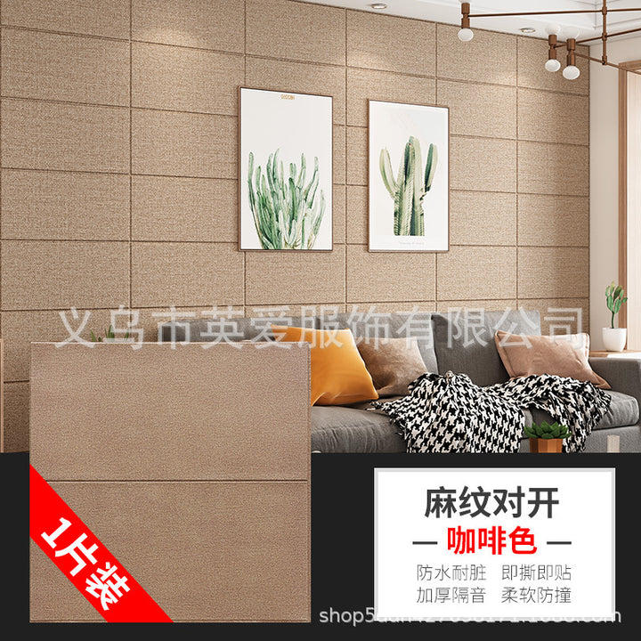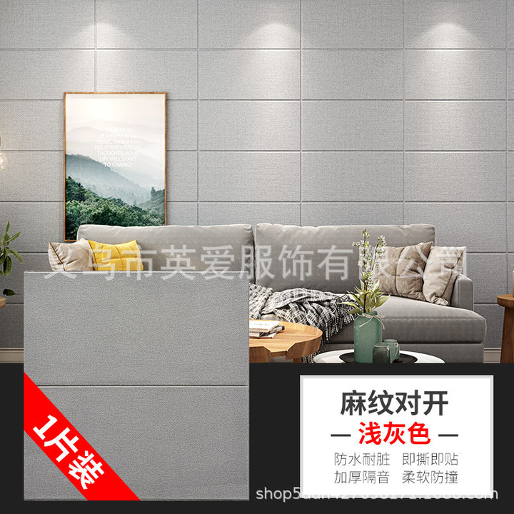 Thickened linen wallpaper self-adhesive 3D three-dimensional wall sticker waterproof and moisture-proof bedroom wallpaper living room background wa...