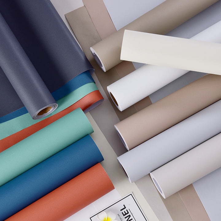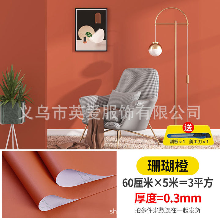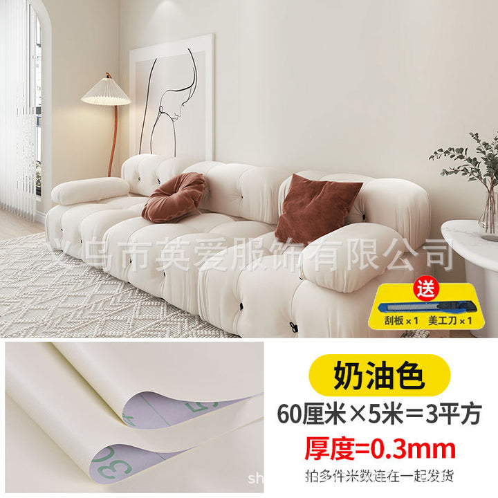 Thickened PVC furniture renovation sticker wardrobe solid color skin feeling cream wind wallpaper bedroom desktop cover ugly self-adhesive wall
