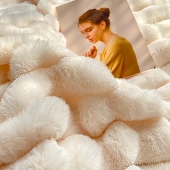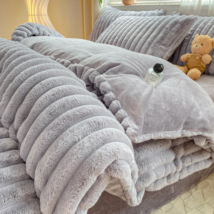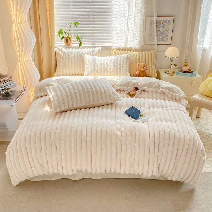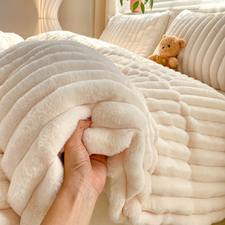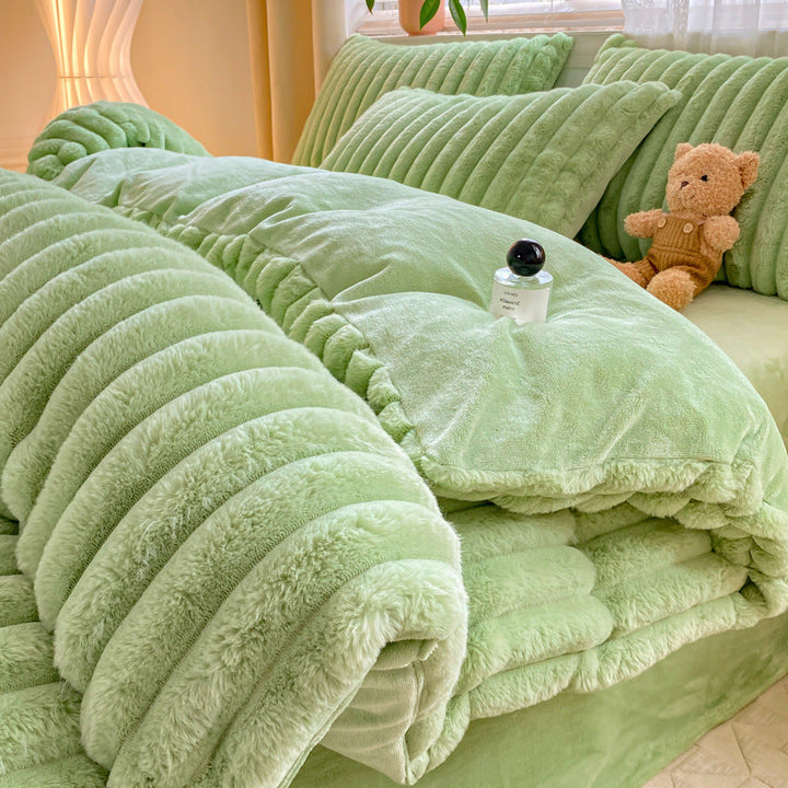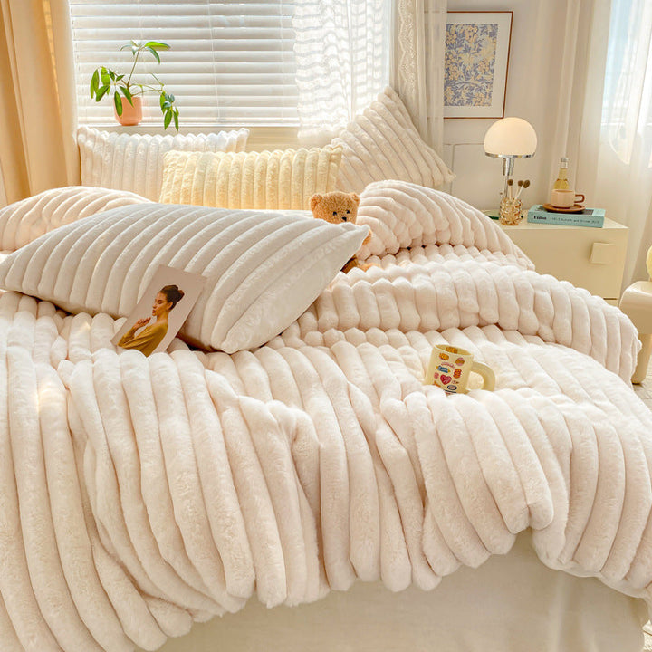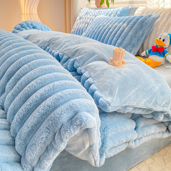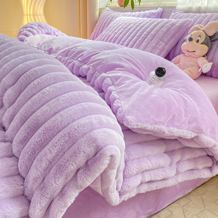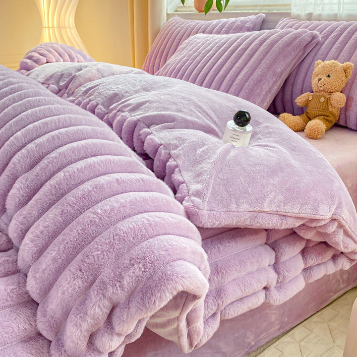 Thickened rabbit fleece four-piece winter milk fleece bed sheet quilt cover coral fleece bed ...