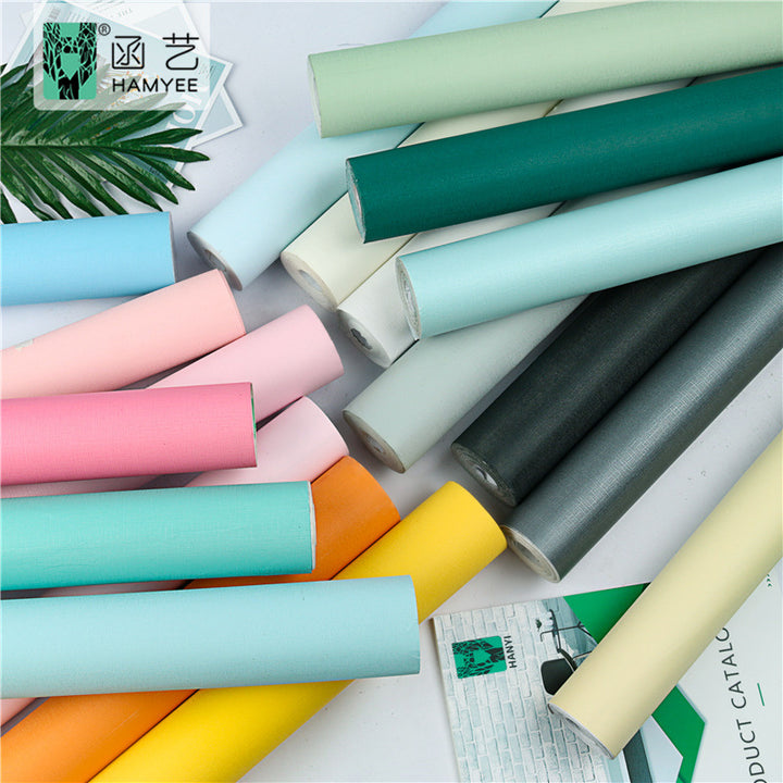 Thickened self-adhesive Nordic style wallpaper sticker pvc wall covering Morandi solid color plain wallpaper self-adhesive wallpaper