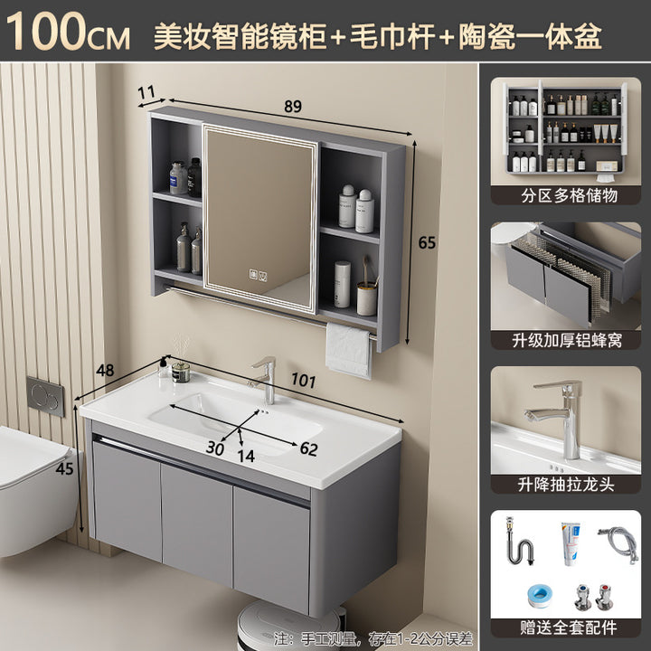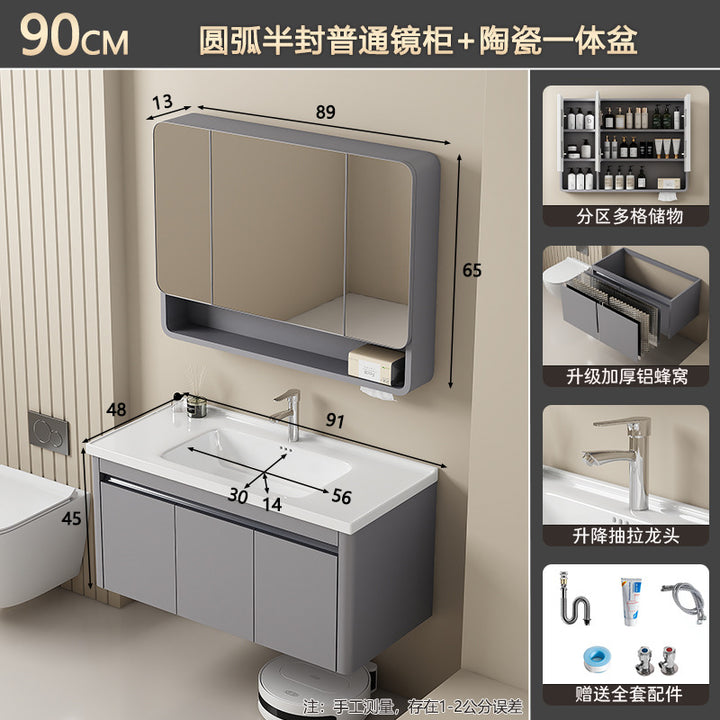 Thickened Solid Space Aluminum Honeycomb Bathroom Cabinet Washbasin Toilet Washbasin Ceramic Integrated Washbasin Cabinet Combination