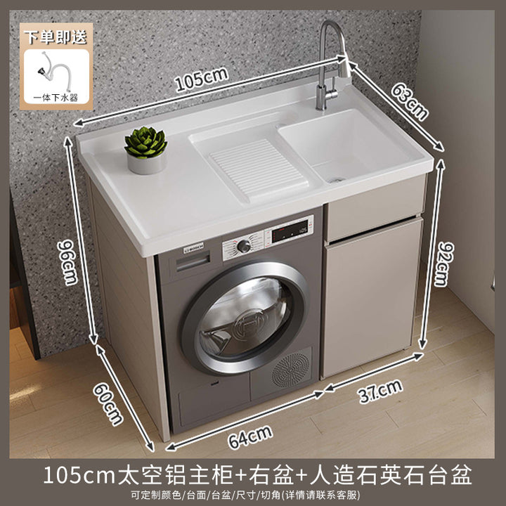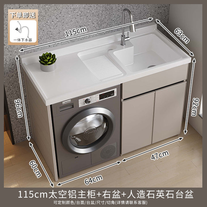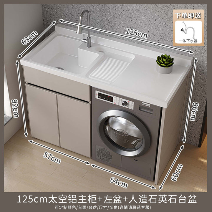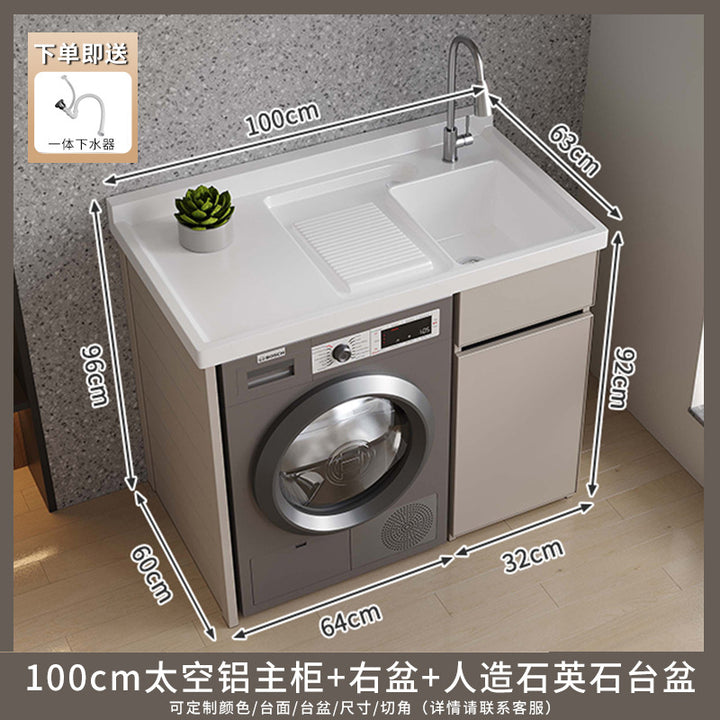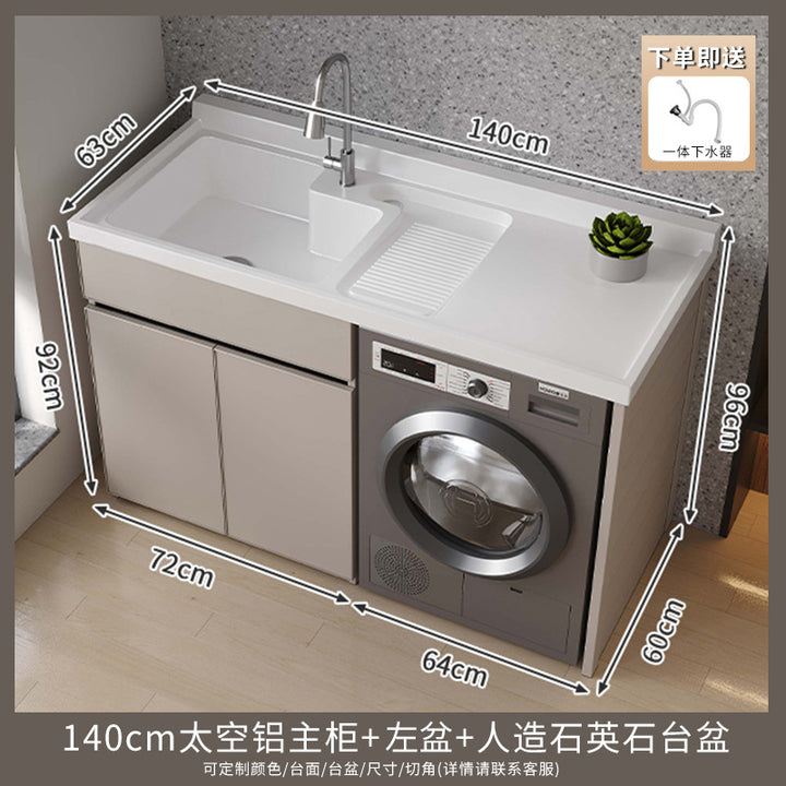 Thickened space aluminum balcony cabinet with washboard quartz stone countertop washing machine cabinet laundry hand balcony combination cabinet