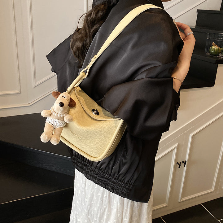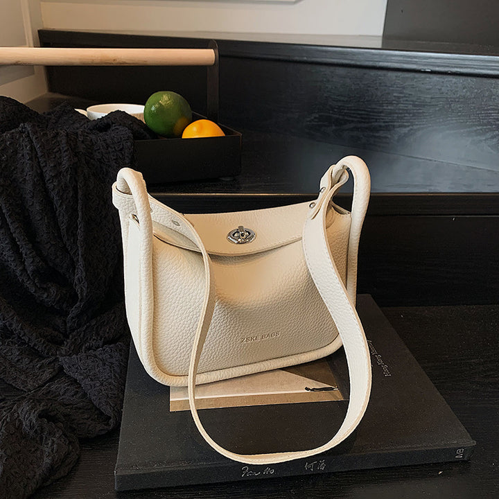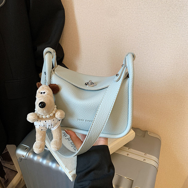 This year's popular lychee pattern super fire shoulder bucket bag fashionable foreign texture messenger bag commuter versatile women's bag