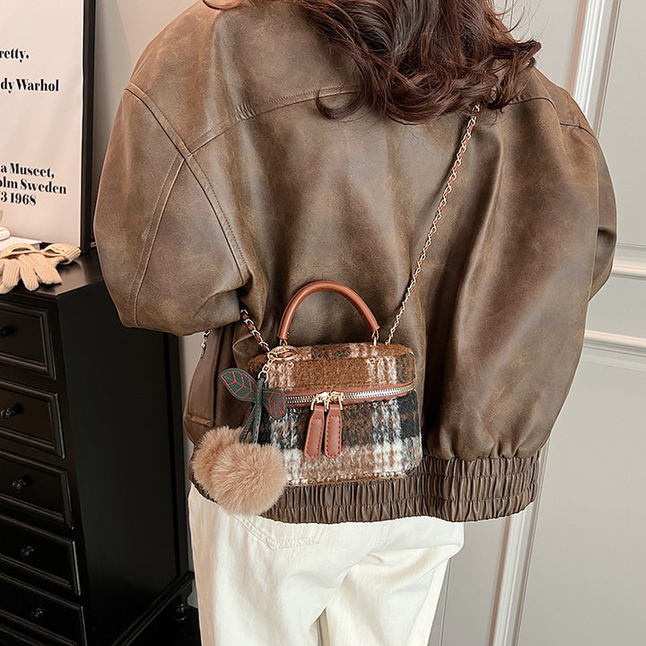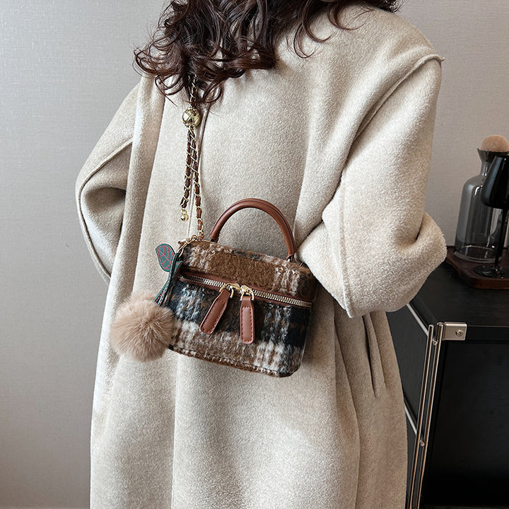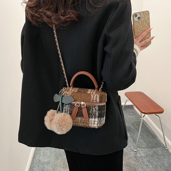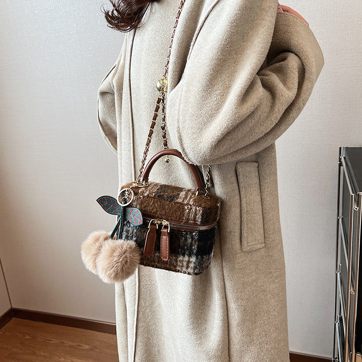 This year's popular niche woolen handbag bag 2025 new women's bag versatile chain messenger bag mini bucket bag