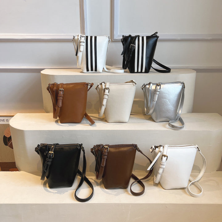 This year's popular small bag women's Korean version striped women's bag fashionable versatile shoulder bag simple messenger mobile phone bucket bag