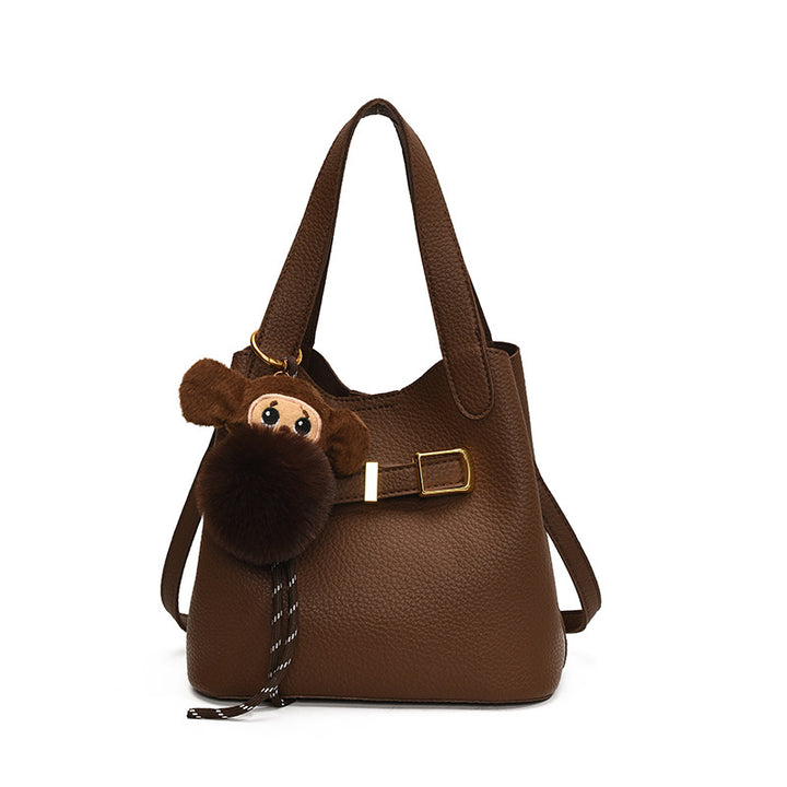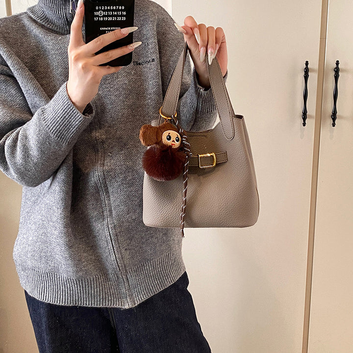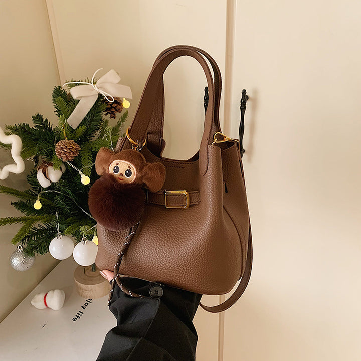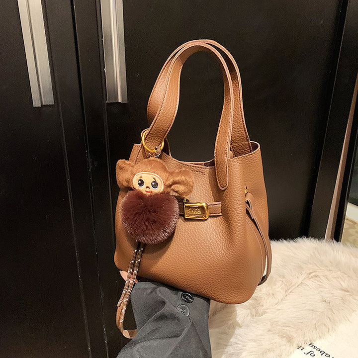 This year's popular soft leather handbag, small tote basket bag, fashionable and casual versatile portable diagonal span bucket bag