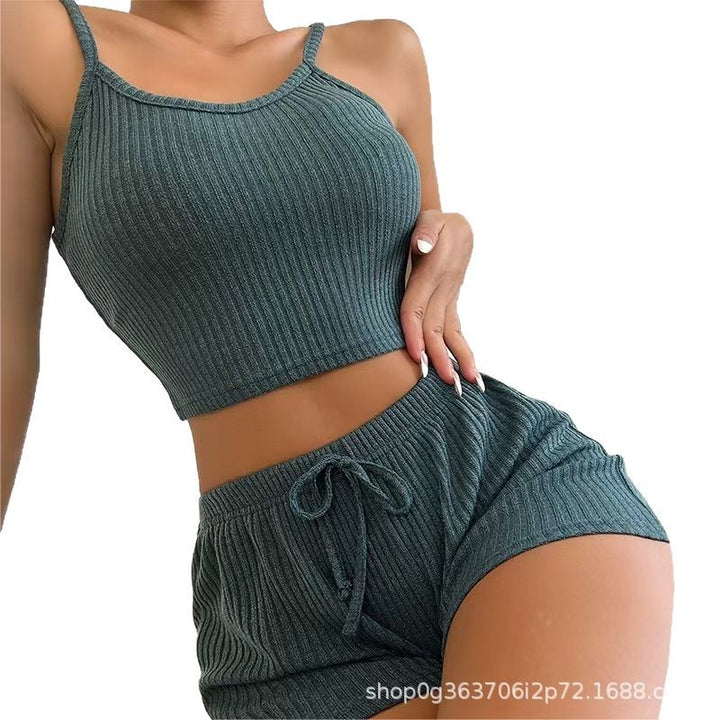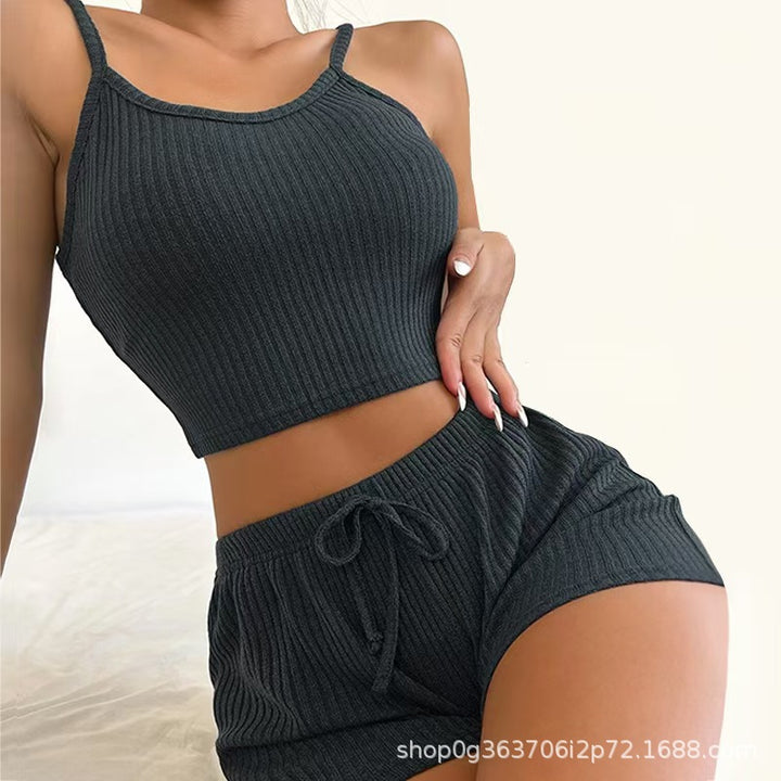 Threaded knitted sling vest shorts casual loungewear pajama set spot European and American loungewear