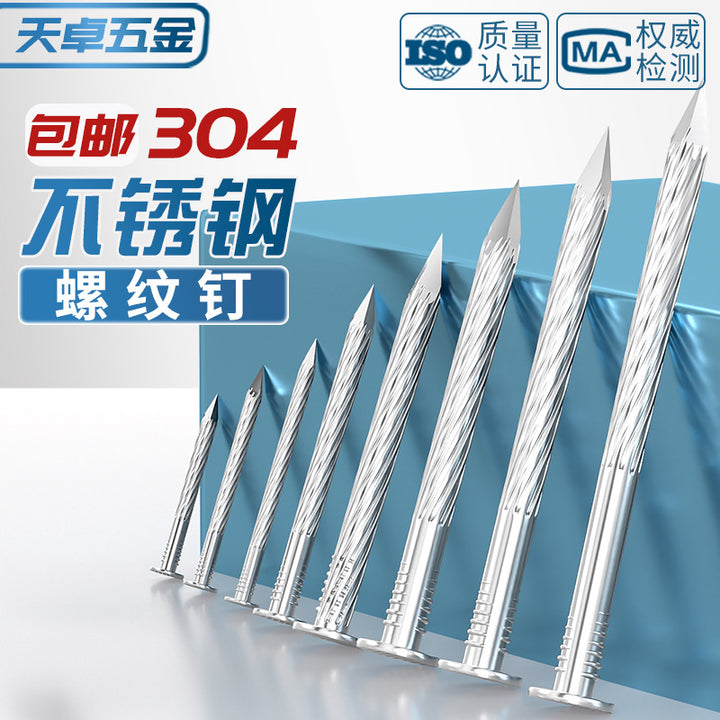 Threaded Nails 304/201 Stainless Steel Floor Nails Floor Dragon Bone Nails Twist Nails Anti-loosening and Anti-corrosion Wood Head Foreign Nails Ro...