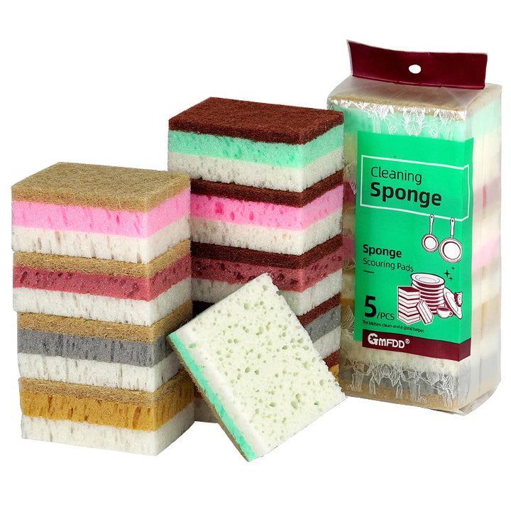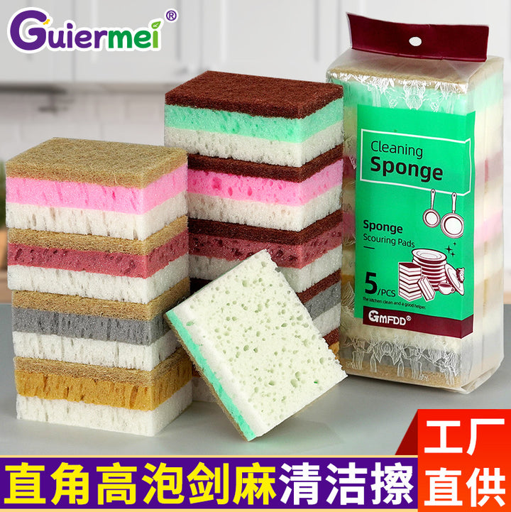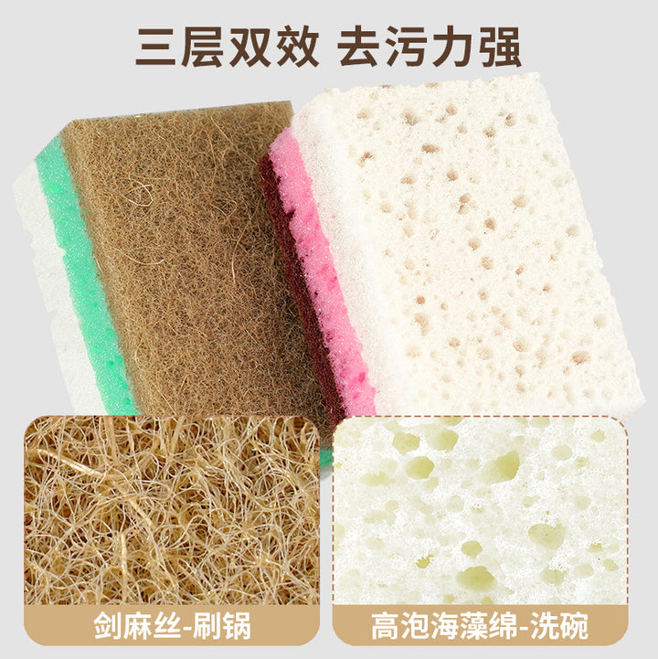 Three-color porous sisal high-foaming sponge wipe kitchen cleaning dishwashing pot scouring cloth honeycomb seaweed magic wipe