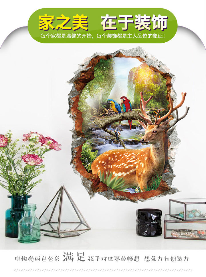 Three-dimensional 3D wall sticker hole landscape sika deer sticker self-adhesive creative background wall decoration removable painting XH7253