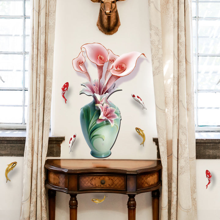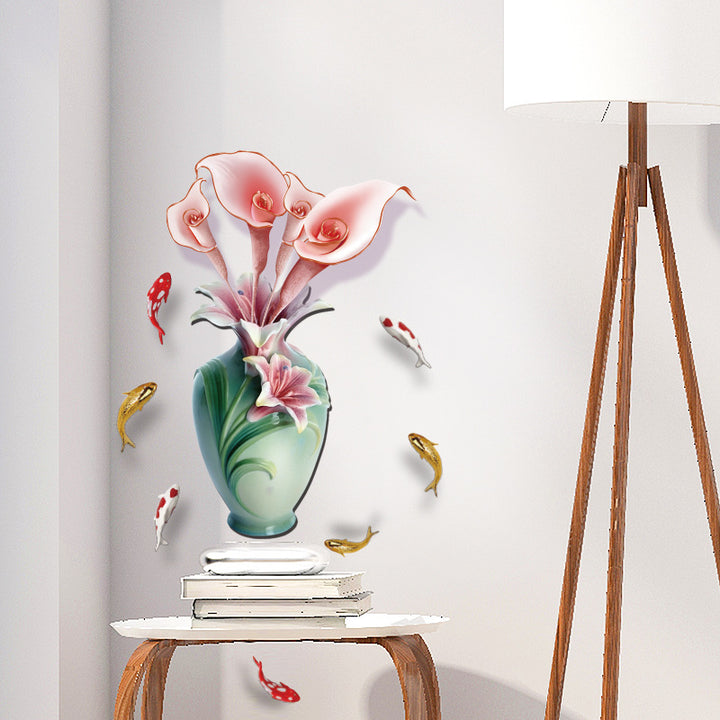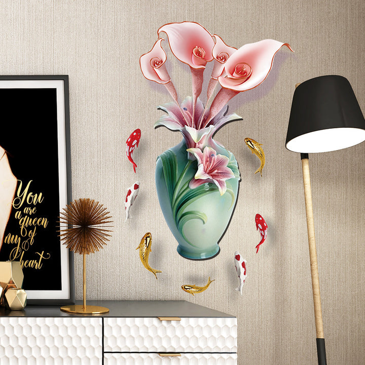 Three-dimensional simulation small vase living room study background wall sticker dining room background decoration wall wallpaper self-adhesive SK...