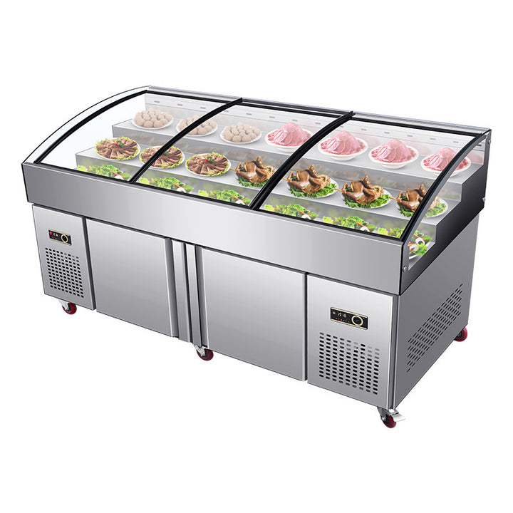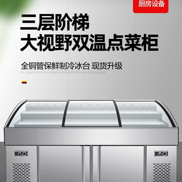 Three-layer ladder display cabinet Double temperature ice table Visual barbecue Braised vegetables Cold dishes Ice table Fresh ordering cabinet Del...