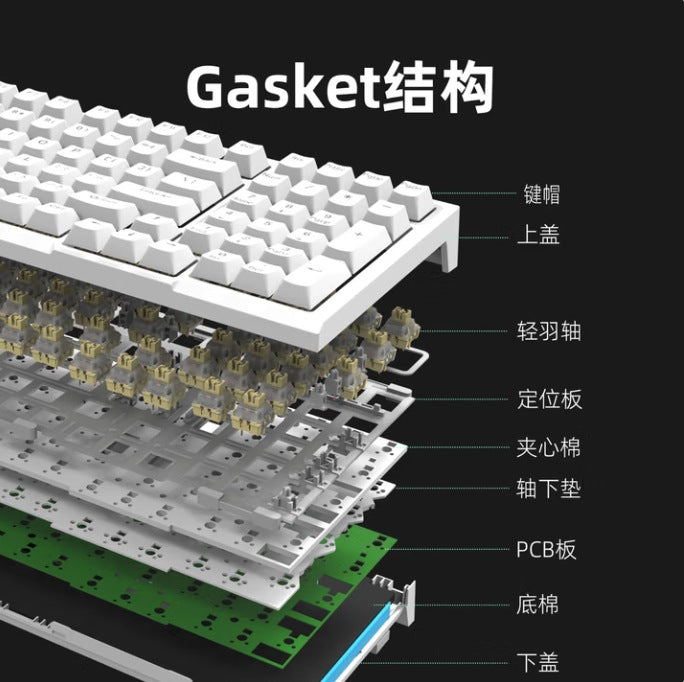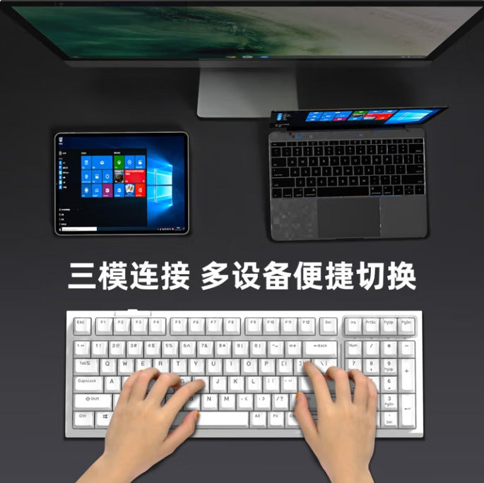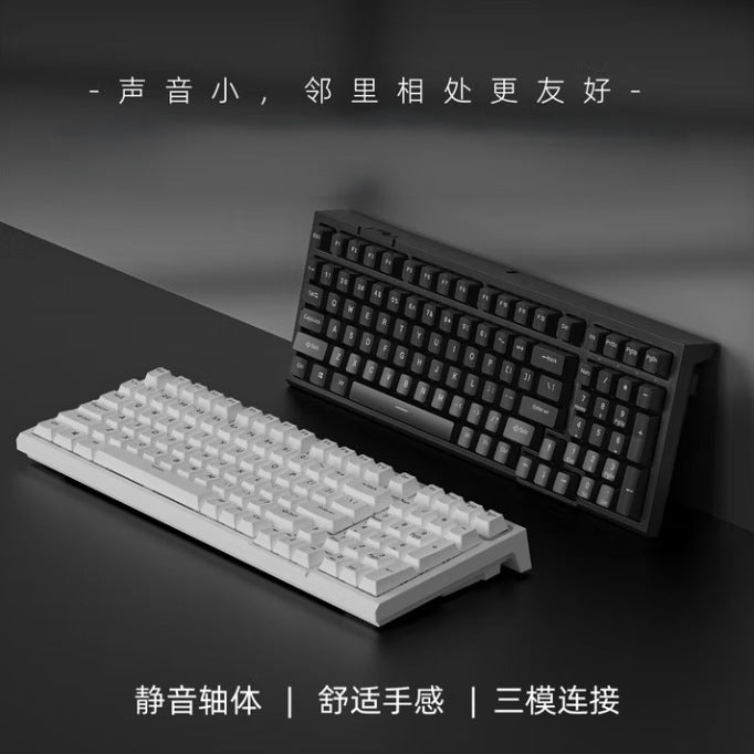 Three-mode mechanical keyboard, wireless wired Bluetooth 99-key computer office, silent shaft body, game ABS keycap