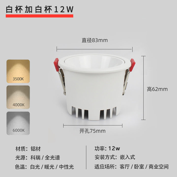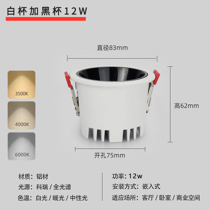 White plus white cup 7w-opening 75mm, 白加白杯10w-开孔75mm, White plus white cup 10w-opening 75mm, Black and black cup 7w-opening 75mm, 黑加黑杯10w-开孔75mm, 白加枪黑杯7w-开孔75mm, White plus gun black cup 7w-opening 75mm, White plus gun black cup 10w-opening 75mm |