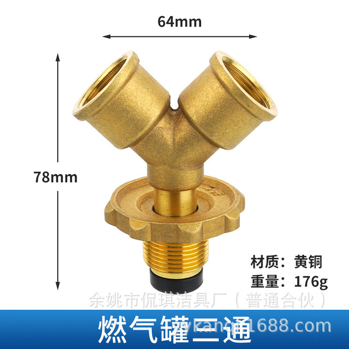 Three-way adapter, gas tank one-way and two-way interface, liquefied gas cylinder low-pressure pressure reducing valve conversion head accessories