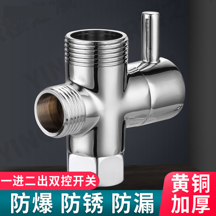 Three-way stainless steel water separator, all-copper large-flow wholesale transfer valve, shower shower one-in and two-out water separator valve