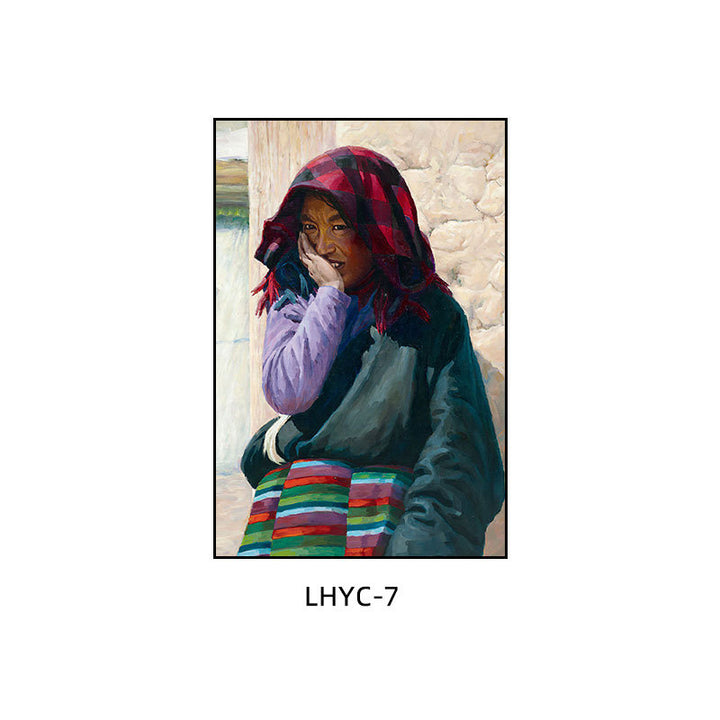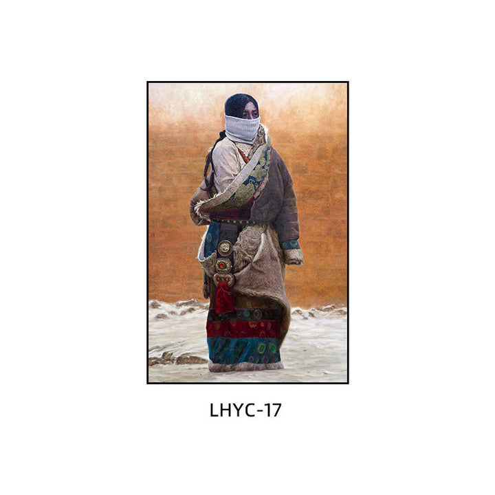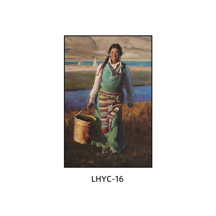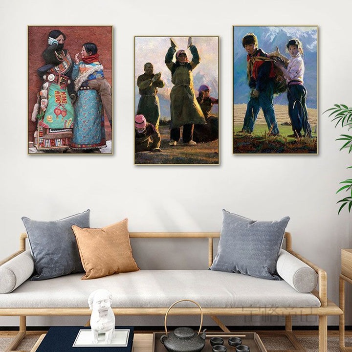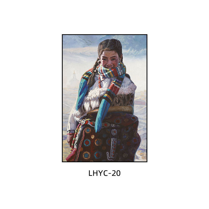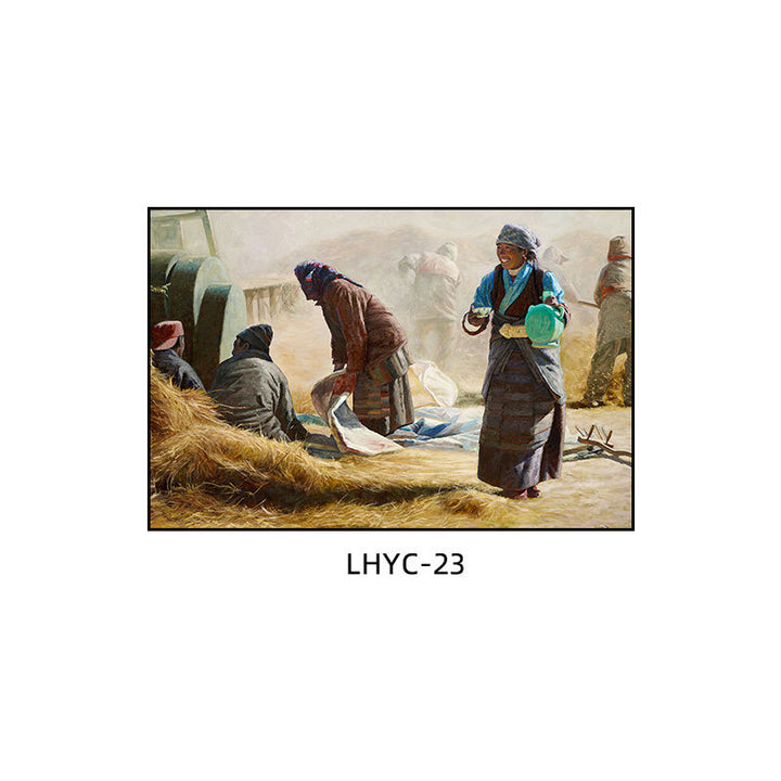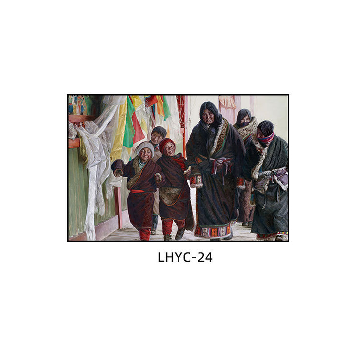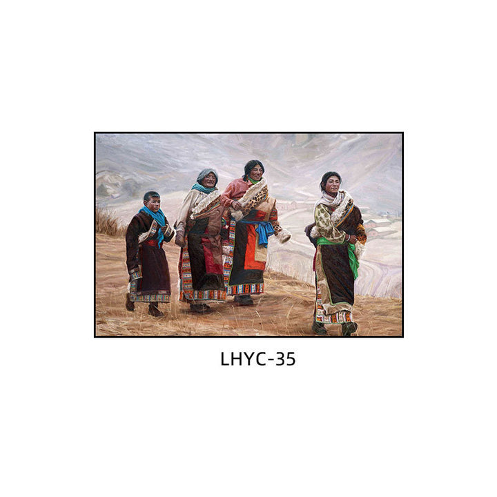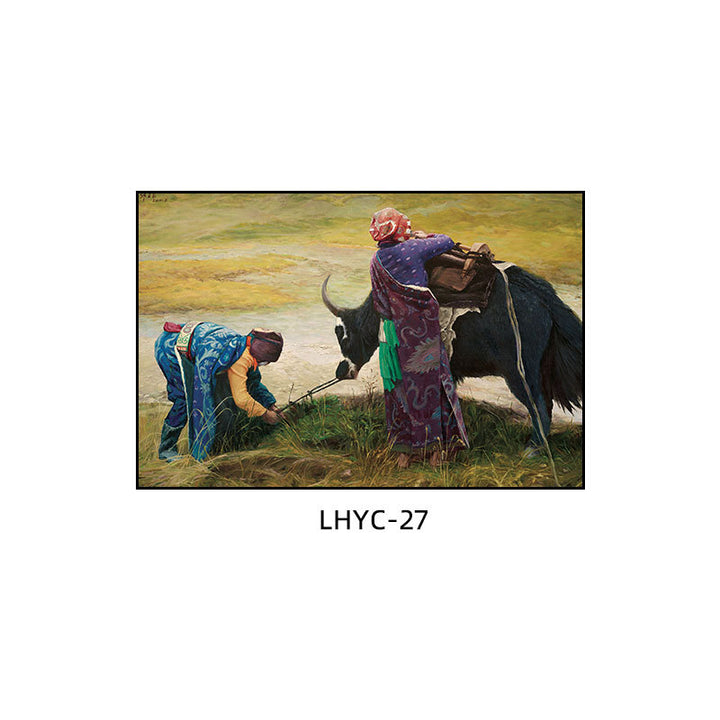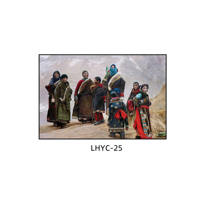 Tibetan decorative painting Tibetan landscape Xizang oil painting Minority hanging painting Character style Living room Inn mural