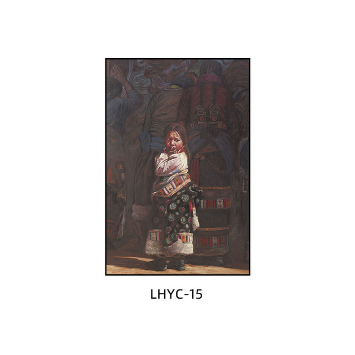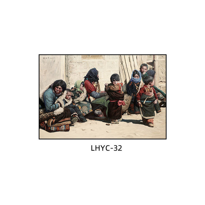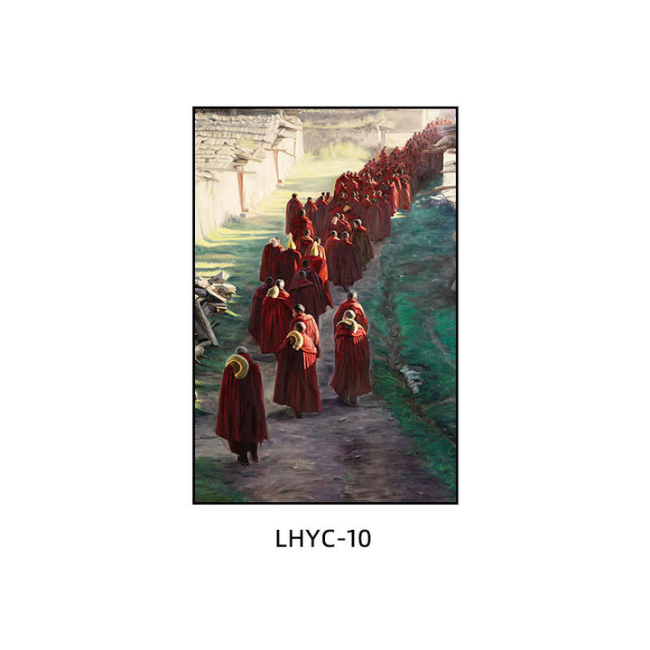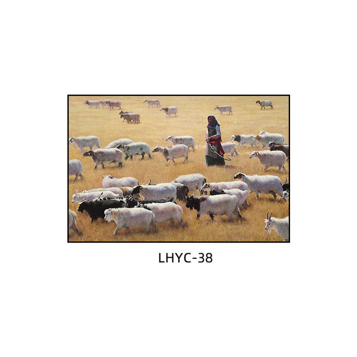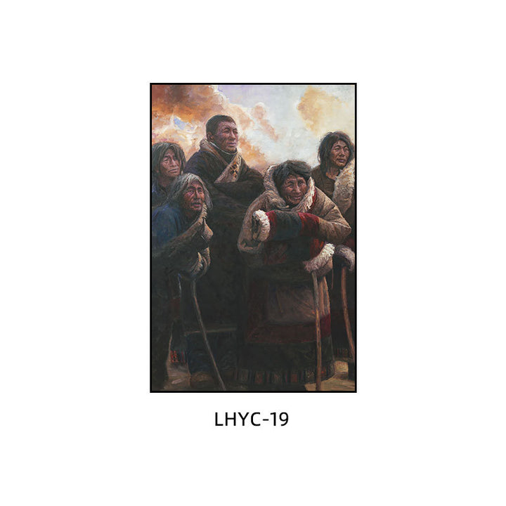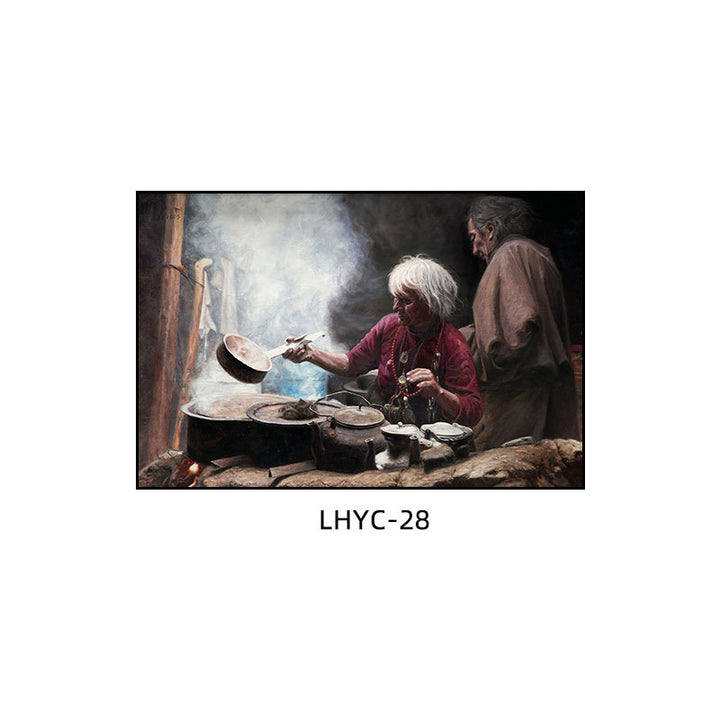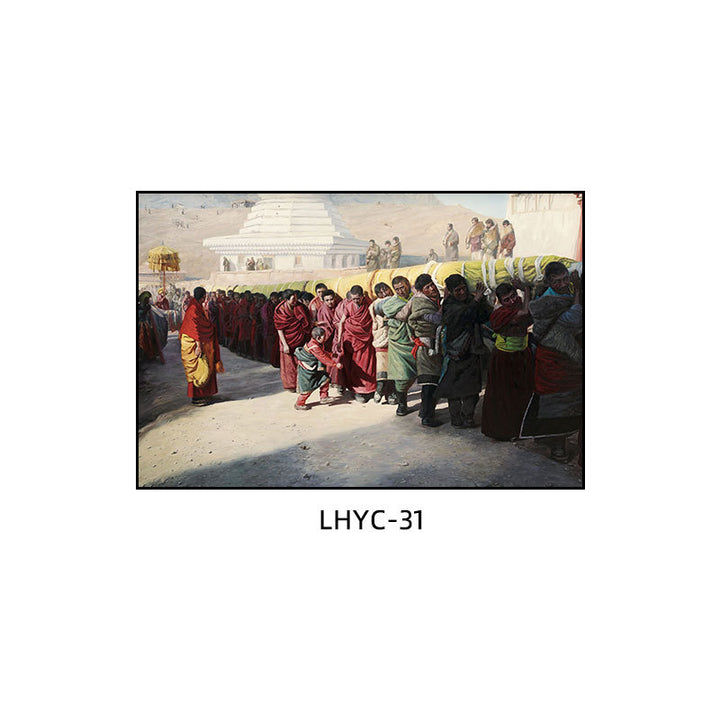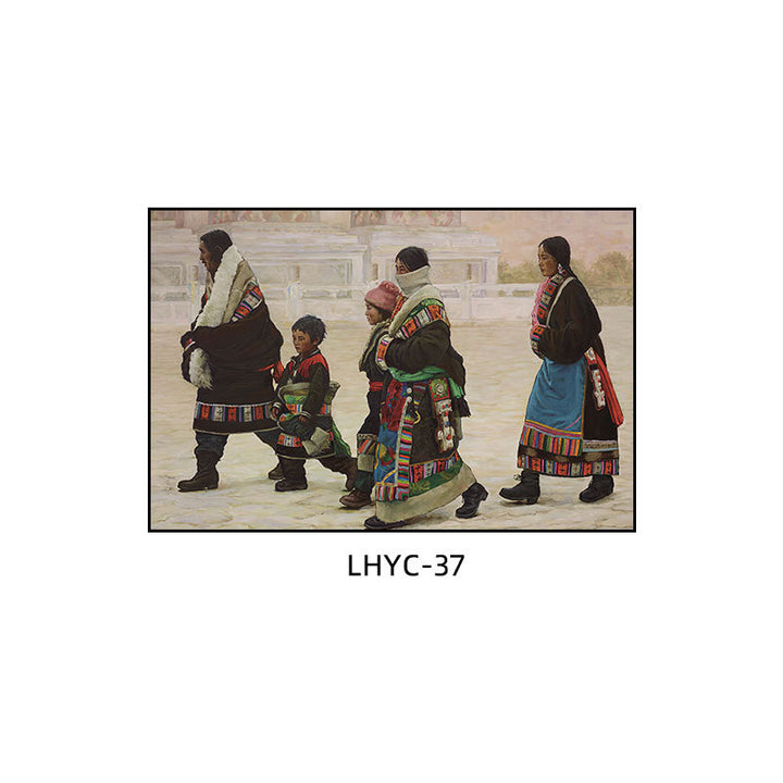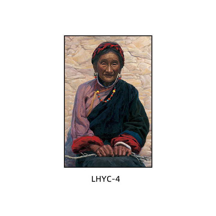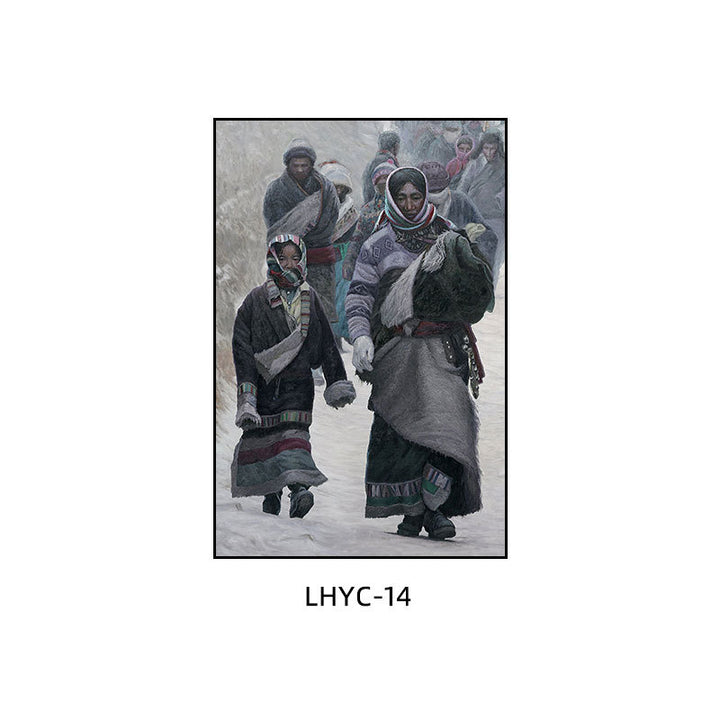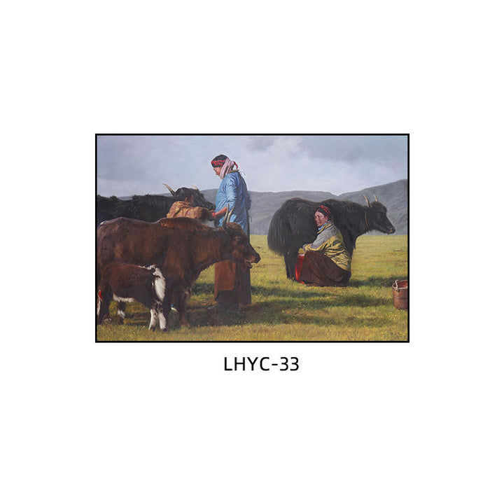 Tibetan decorative painting Tibetan landscape Xizang oil painting Minority hanging painting Character style Living room Inn mural