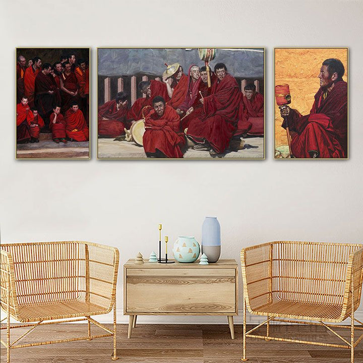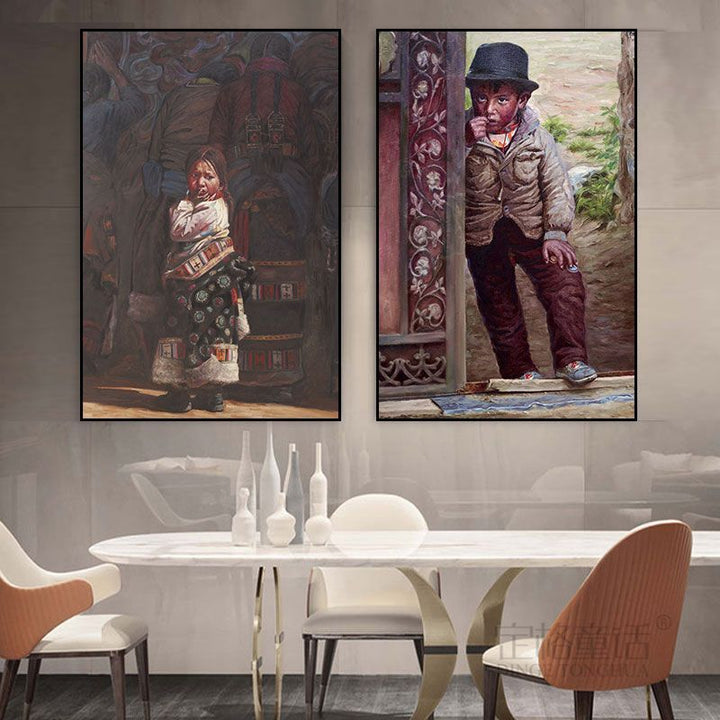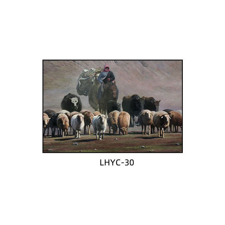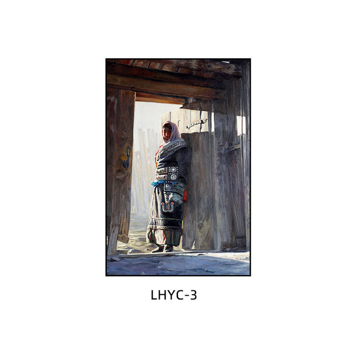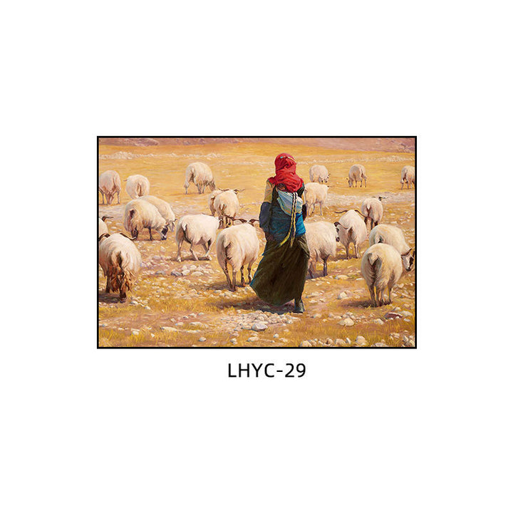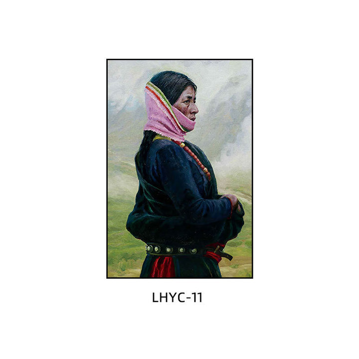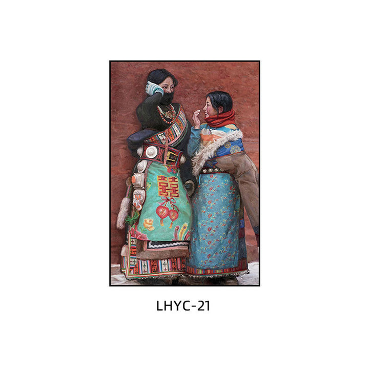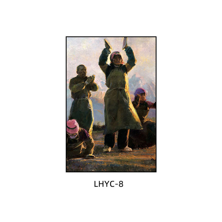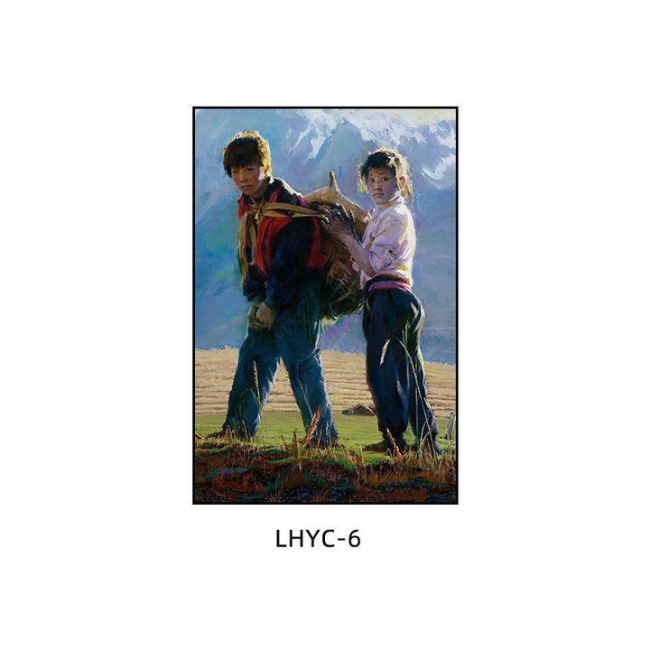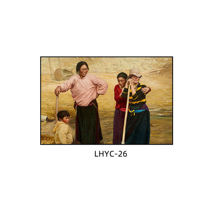 Tibetan decorative painting Tibetan landscape Xizang oil painting Minority hanging painting Character style Living room Inn mural