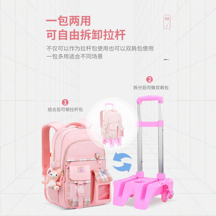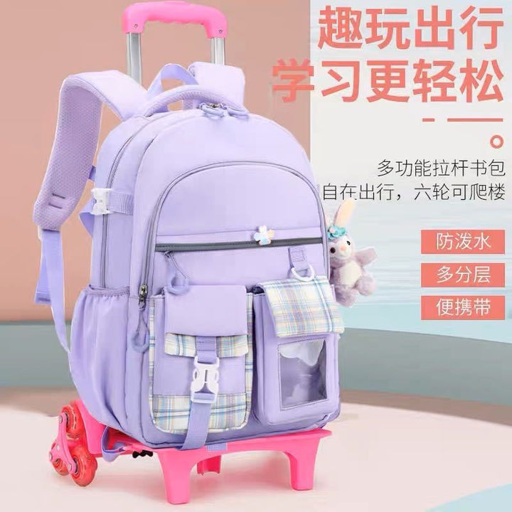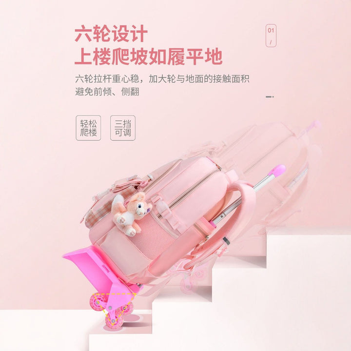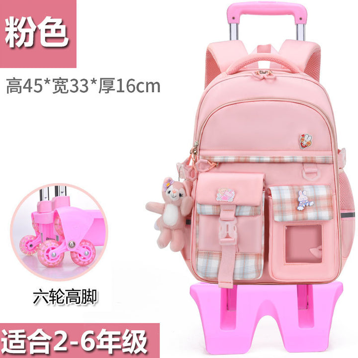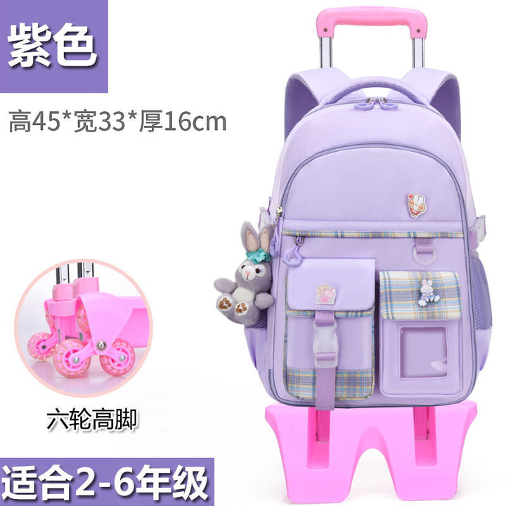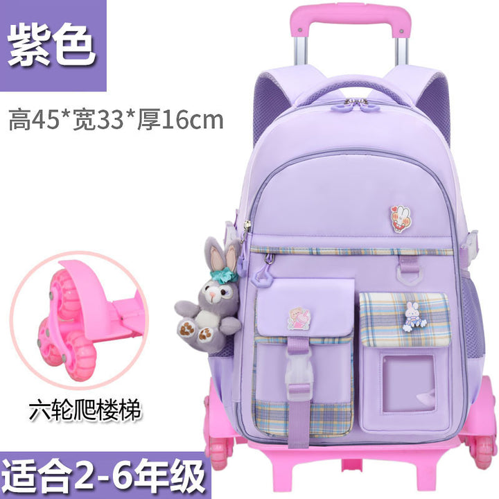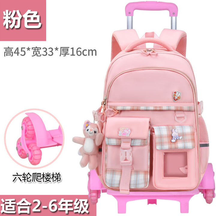 Tie rod schoolbag, primary and secondary school girls, girls in grades 3 to 6, waterproof large-capacity stair climbing children's trolley case