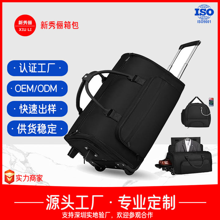 Tie rod travel bag with wheel Tie rod luggage bag Portable business trip Large capacity can be boarded Foldable trolley case travel