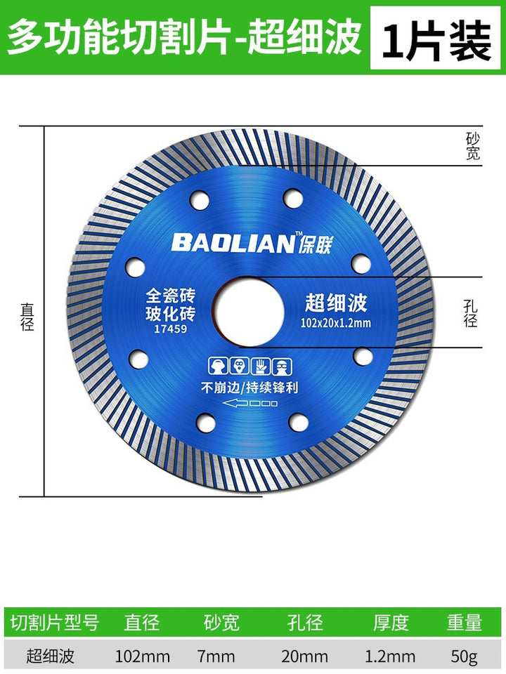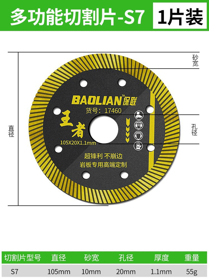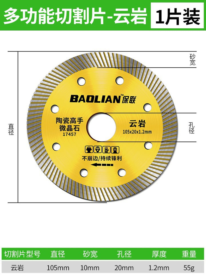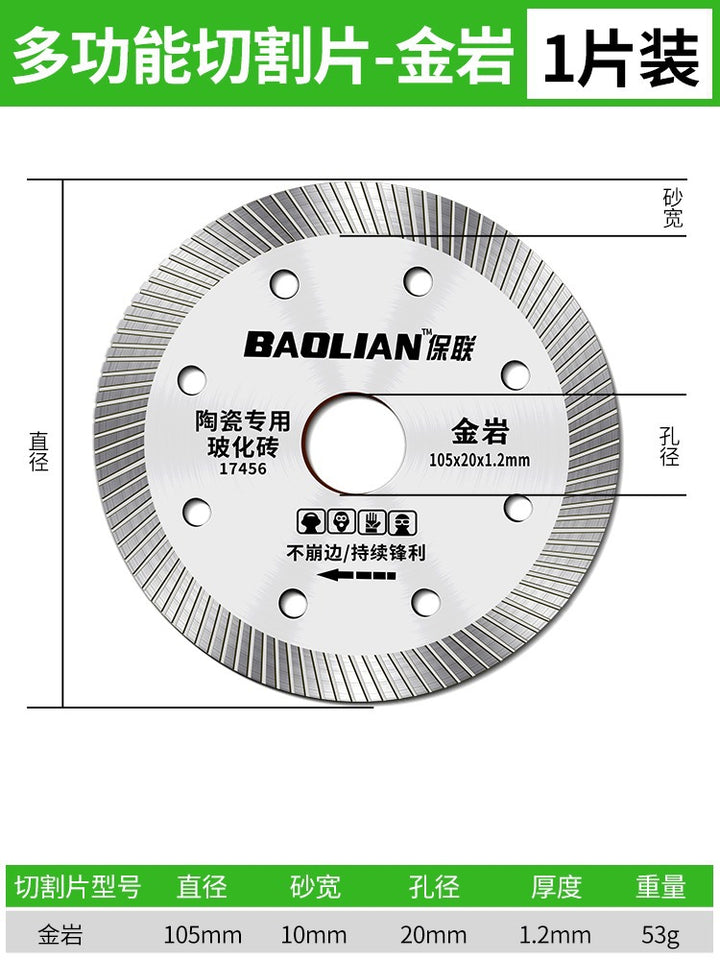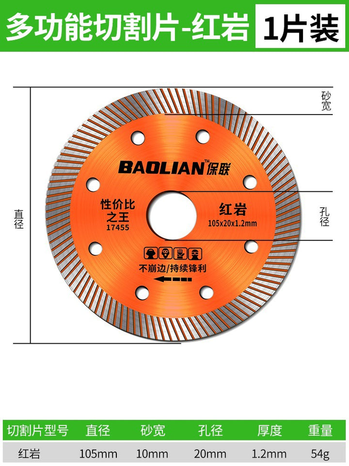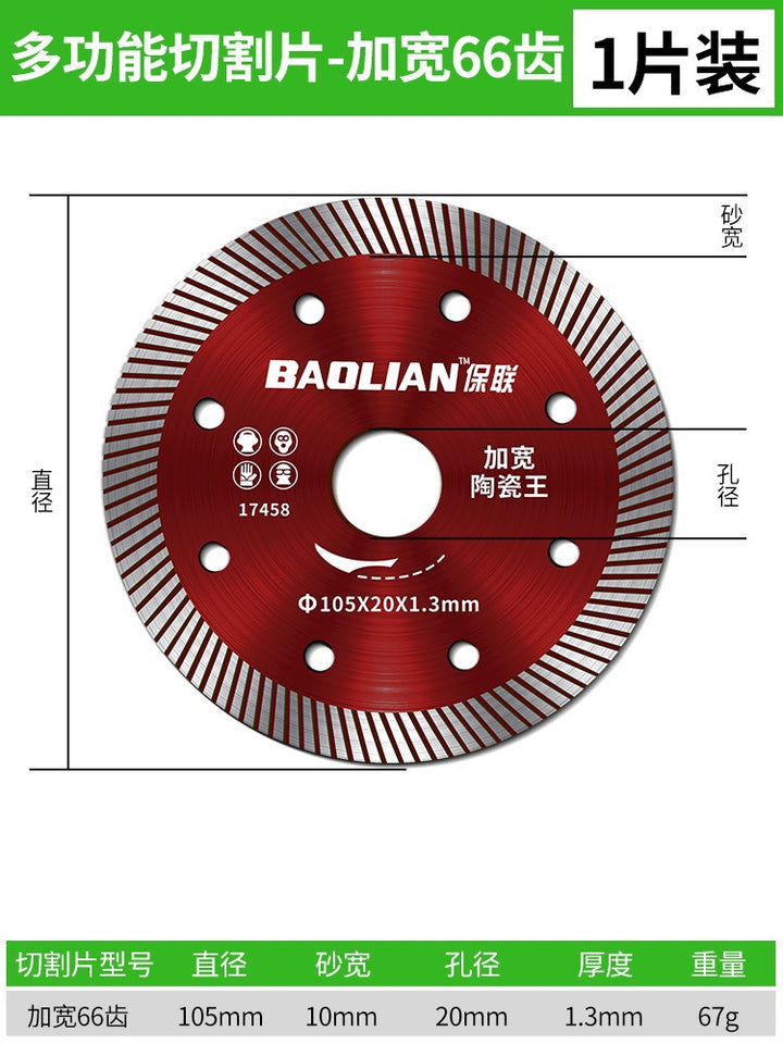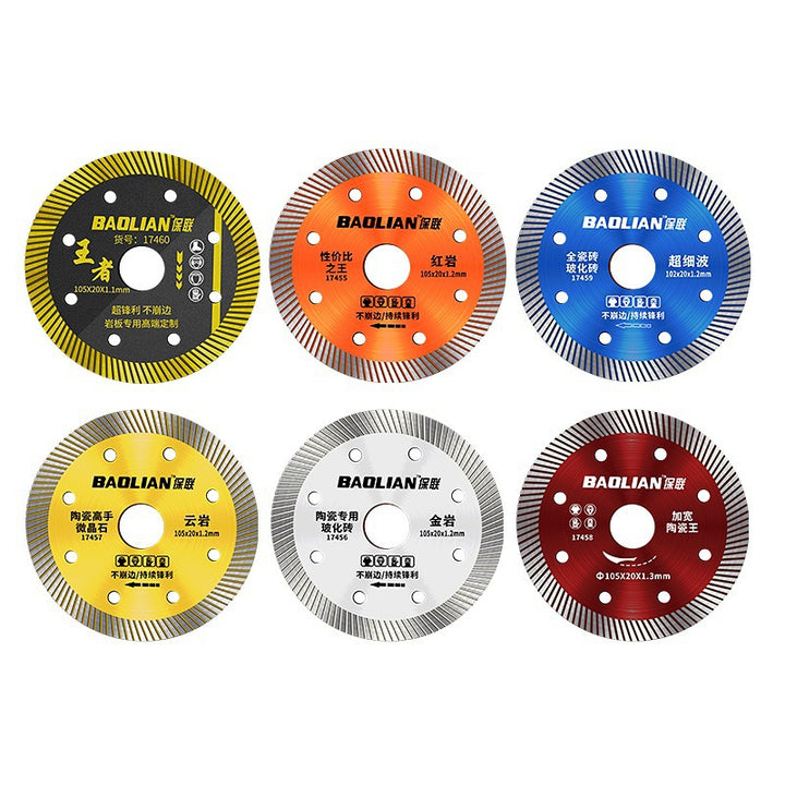Red rock slice [105x20x1.2mm] universal type, Special for vitrified bricks [105x20x1.2mm] sharp type, Porcelain cutting expert [105x20x1.2mm] cut-resistant type, 全瓷王【102x20x1.2mm】超细波, 陶瓷王【105x20x1.3mm】加宽波, 岩板【105x20x1.1mm】超薄利 |