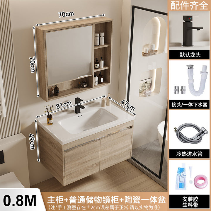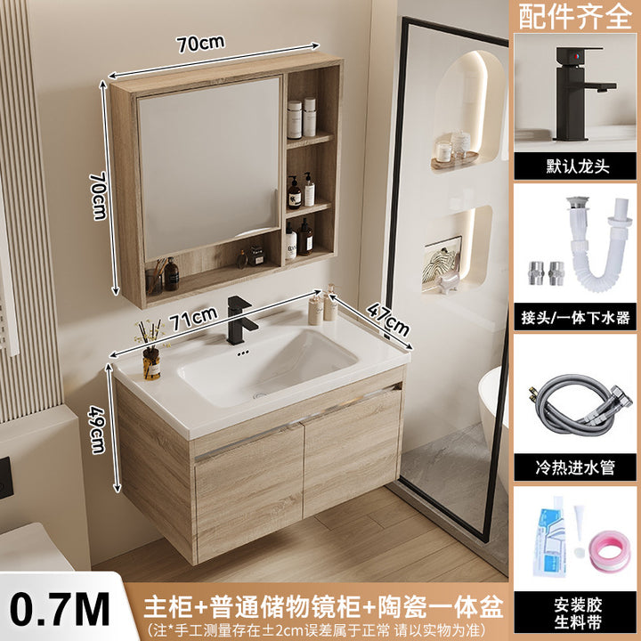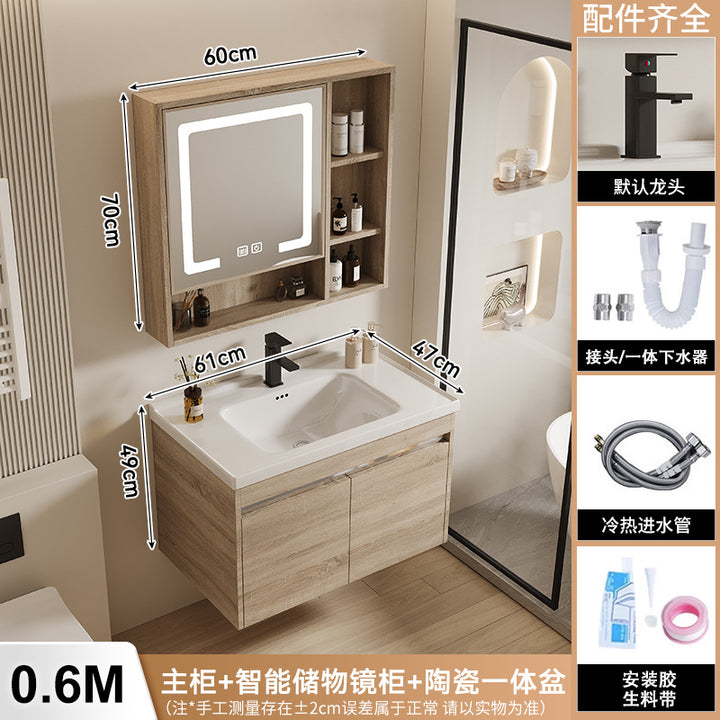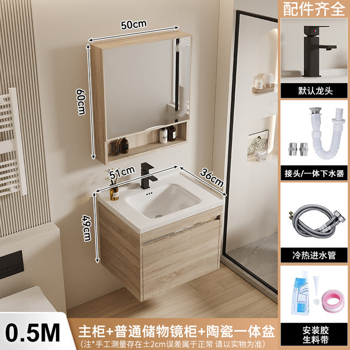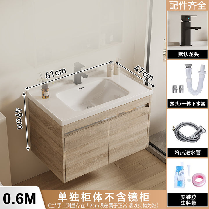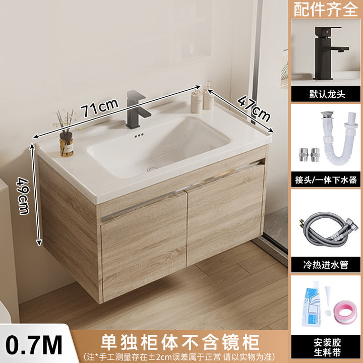 Toilet log wind wash basin ceramic integrated wall-mounted honeycomb aluminum washbasin cabinet combination household bathroom cabinet