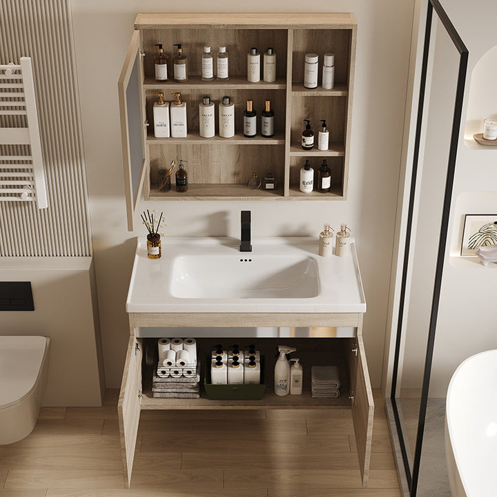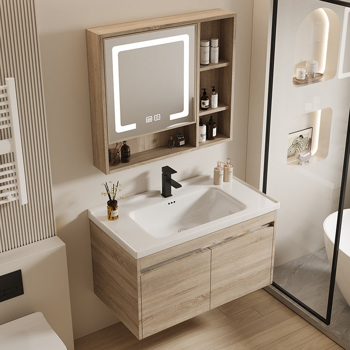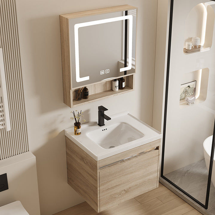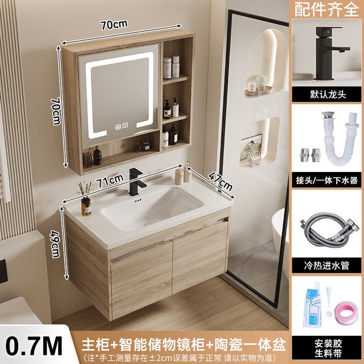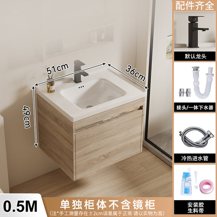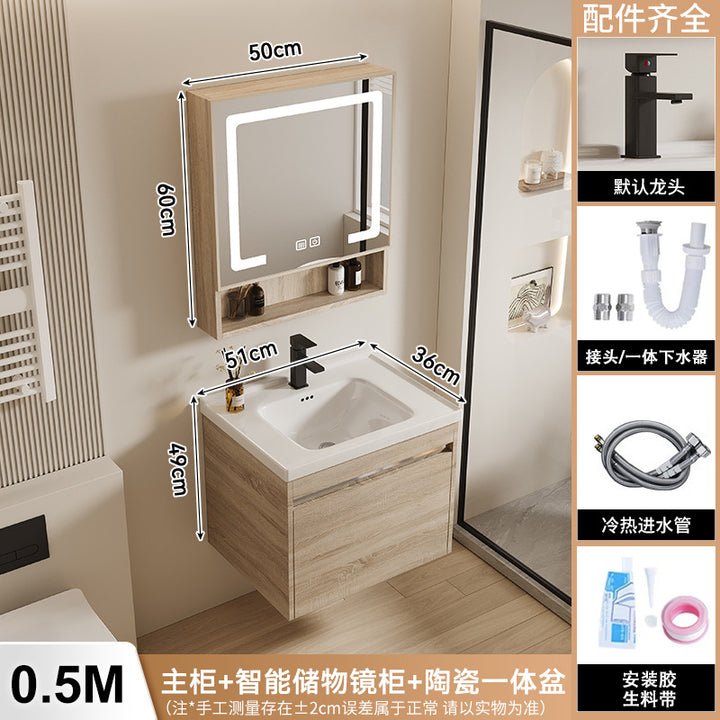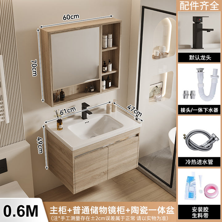 Toilet log wind wash basin ceramic integrated wall-mounted honeycomb aluminum washbasin cabinet combination household bathroom cabinet