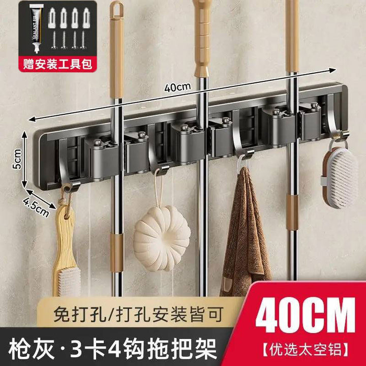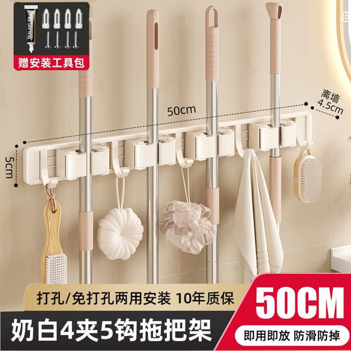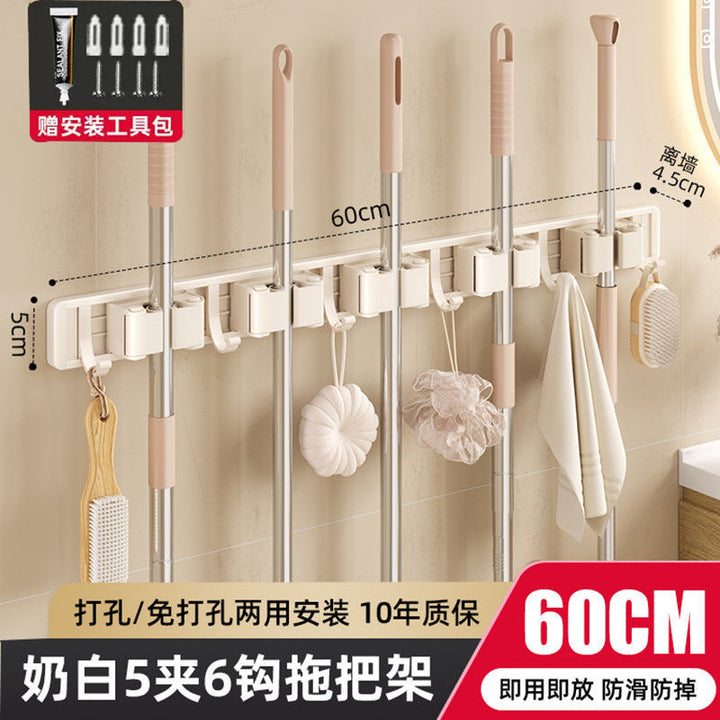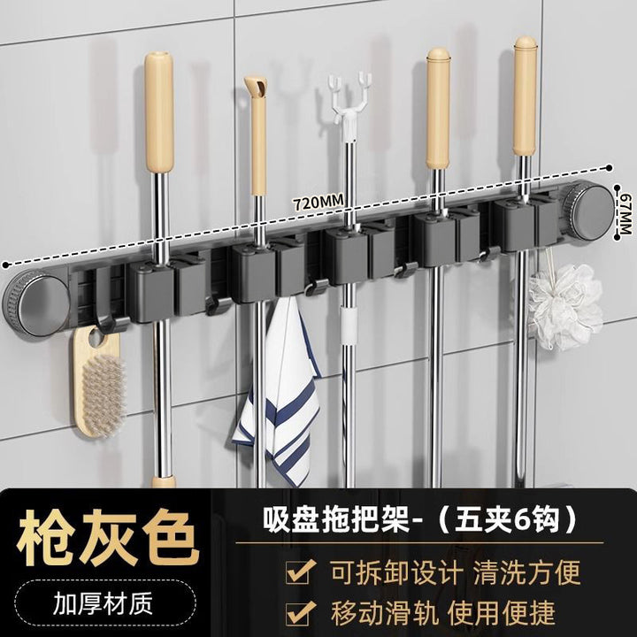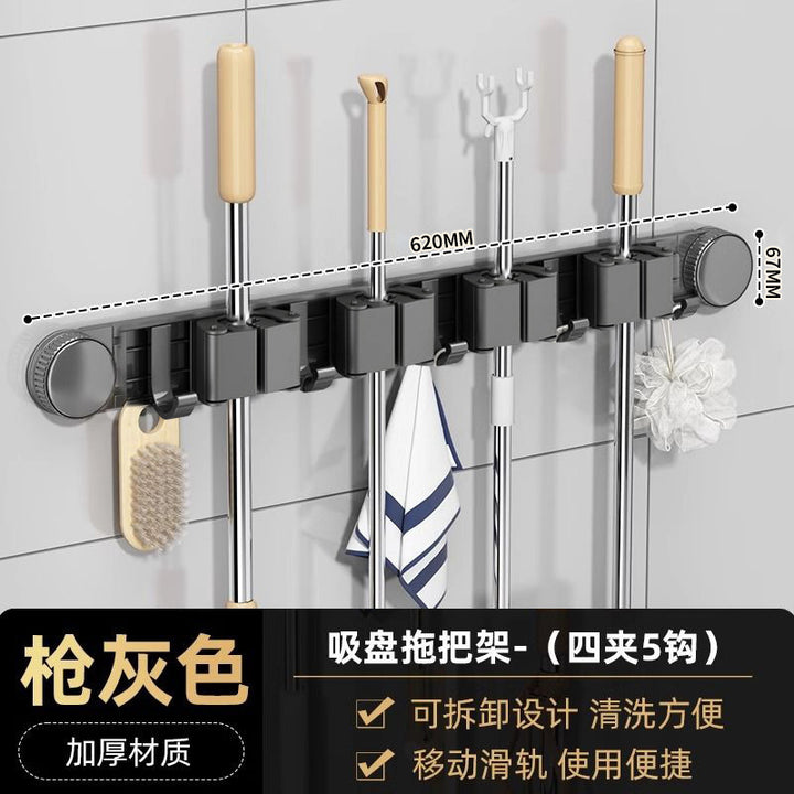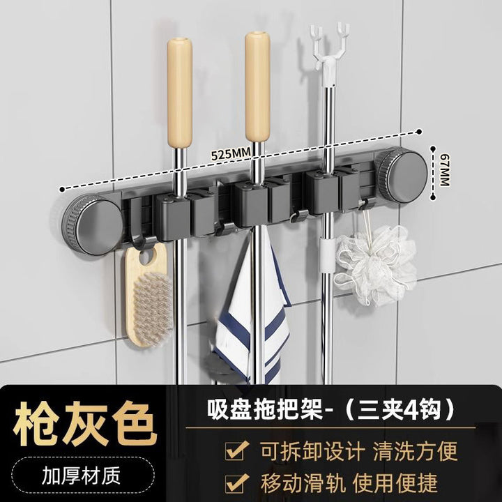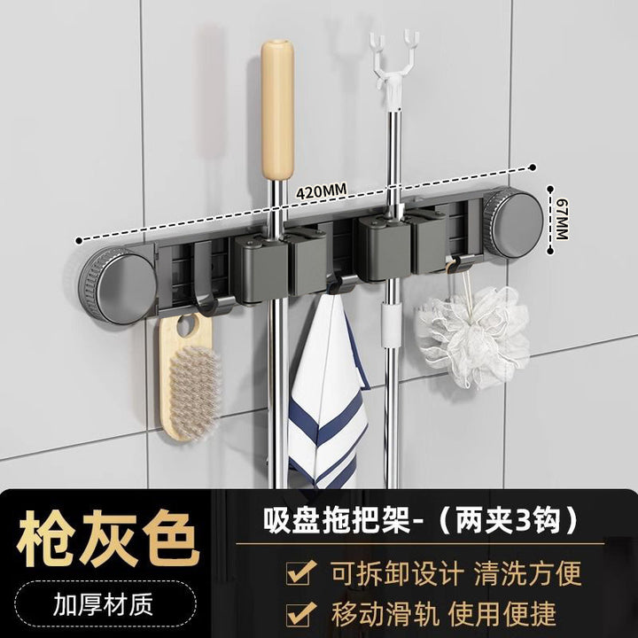 Toilet suction cup mop rack without punching wall hanging bathroom artifact broom mop rag storage hook storage rack
