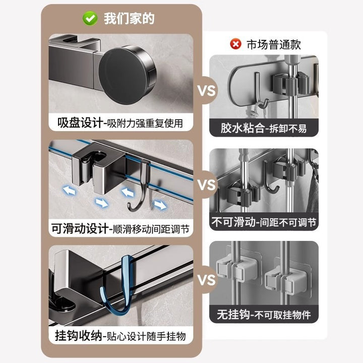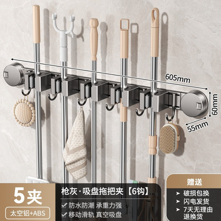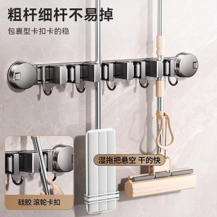 Toilet suction cup mop wall hanging clip bathroom non-punching artifact fixed hook buckle broom storage hanger