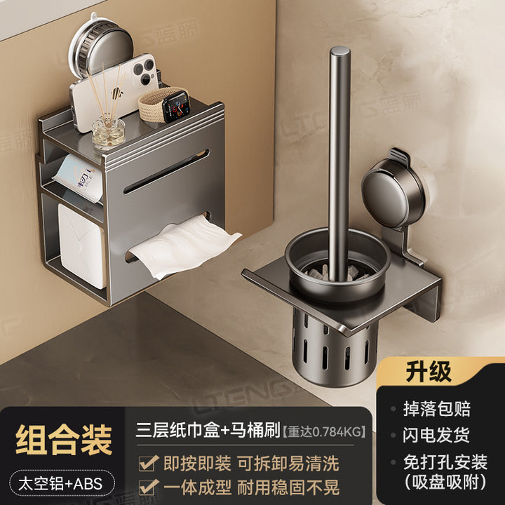 Toilet suction cup tissue box rack Toilet multi-function non-punching wall-mounted toilet paper toilet paper storage rack