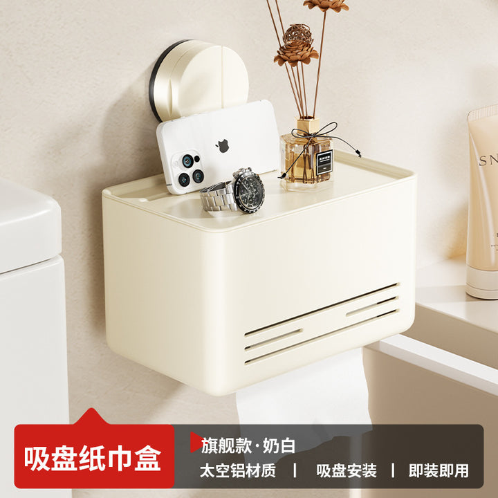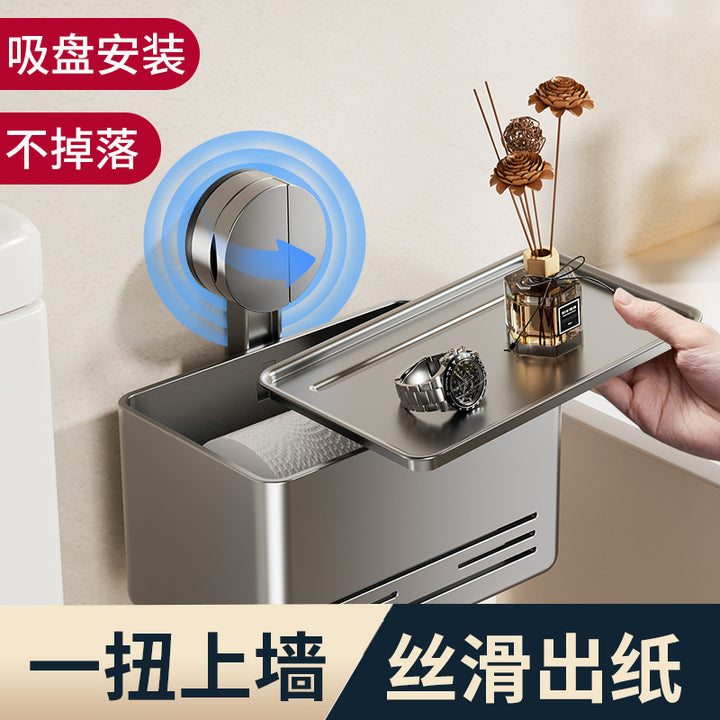 Toilet suction cup tissue box wall hanging free punching bathroom toilet carton paper roll pa...