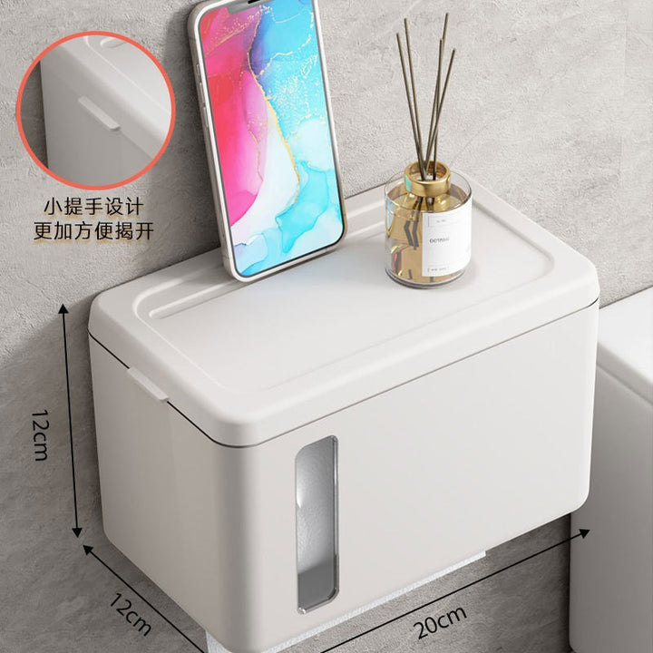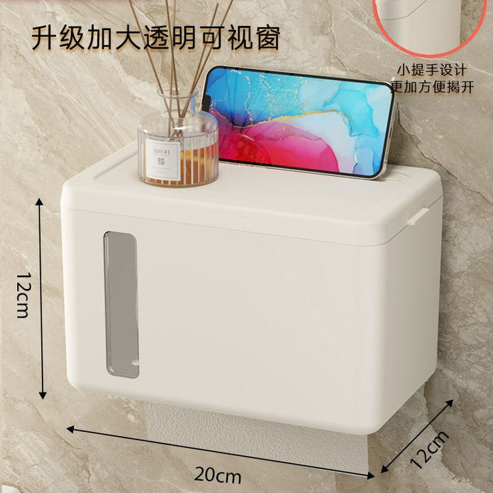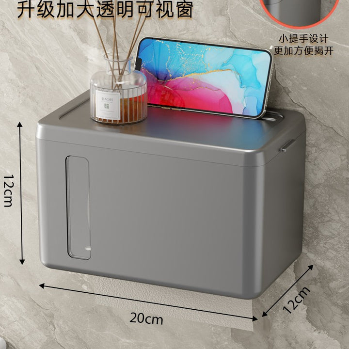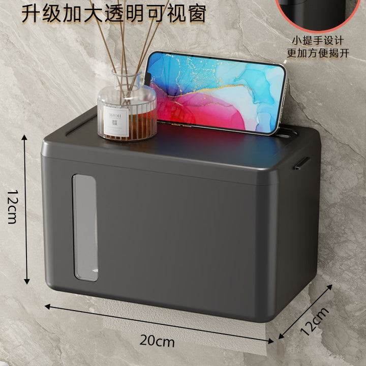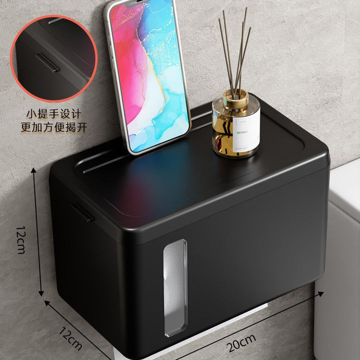 Toilet tissue box non-punching roll paper holder bathroom waterproof with cover tissue box paper drawing toilet wall hanging toilet