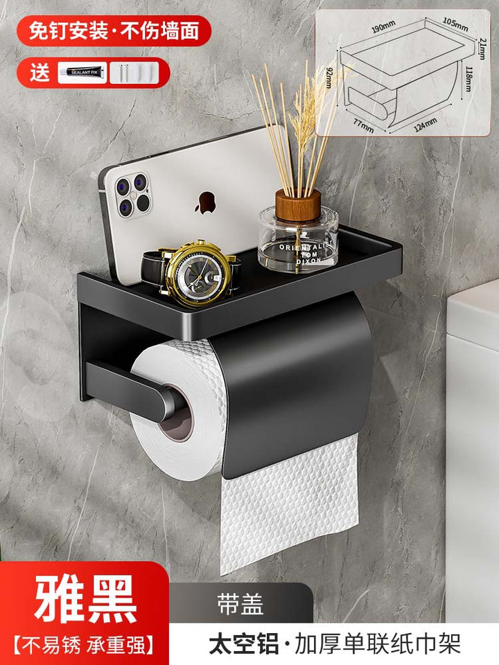 Toilet paper holder without cover - black [punched/nail-free dual use], Toilet paper holder with lid - black [punched/nail-free dual use], Toilet paper holder without cover - gun ash [punching/nail-free dual use], Toilet paper holder with lid - gun ash [punching/nail-free dual use], Toilet paper holder without lid - milk white [punching/nail-free dual use], Toilet paper holder with lid - milk white [punching/nail-free dual use] |