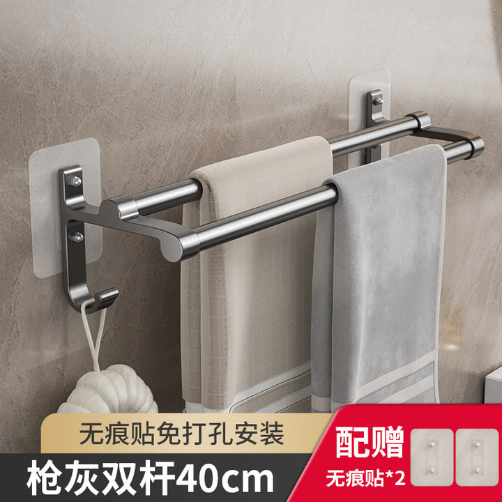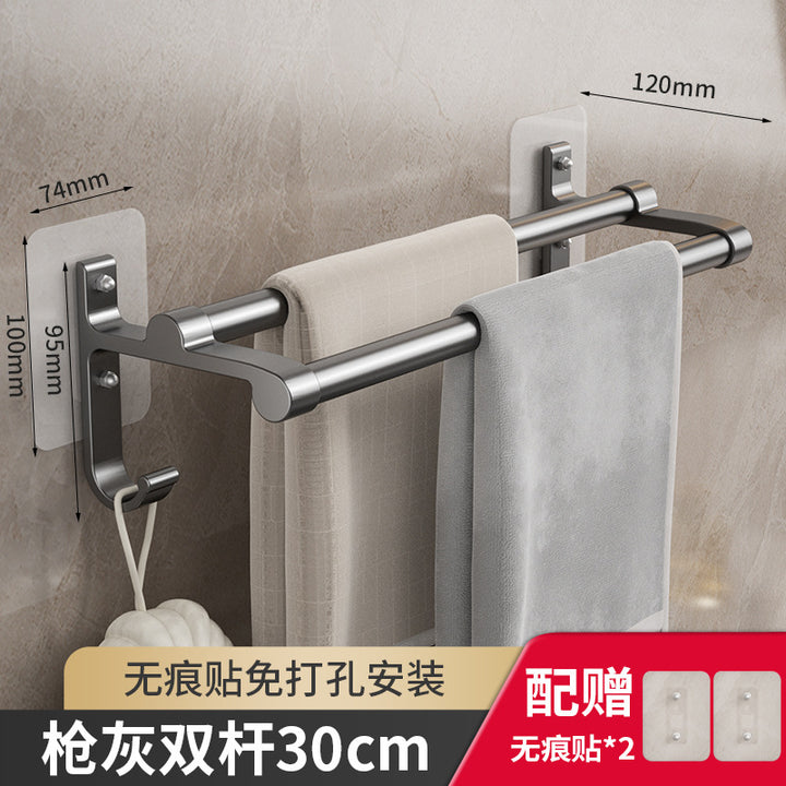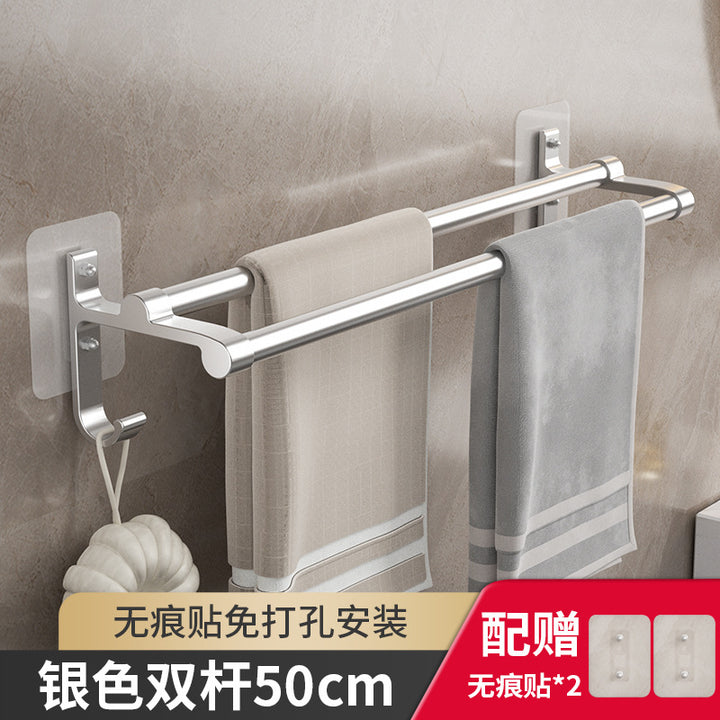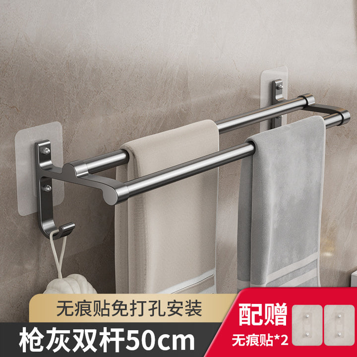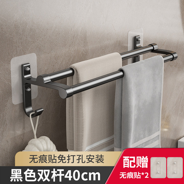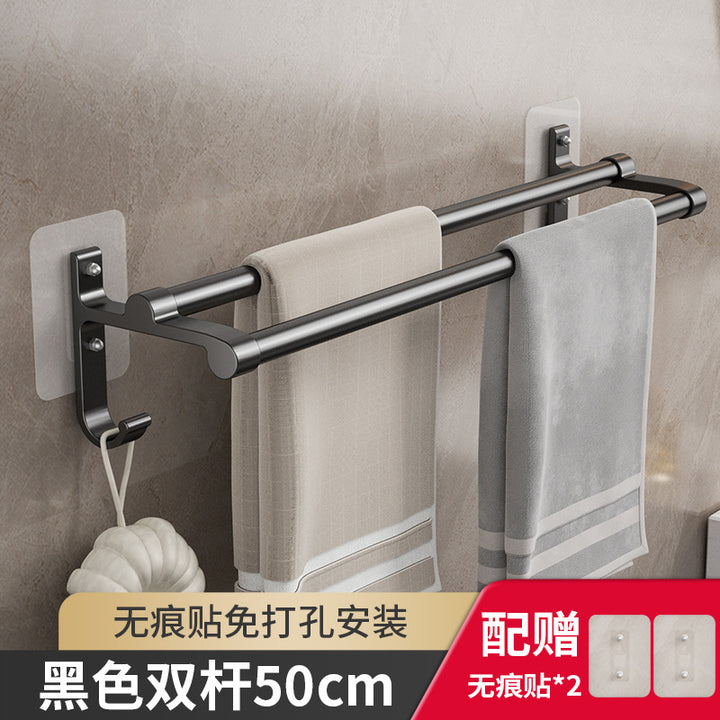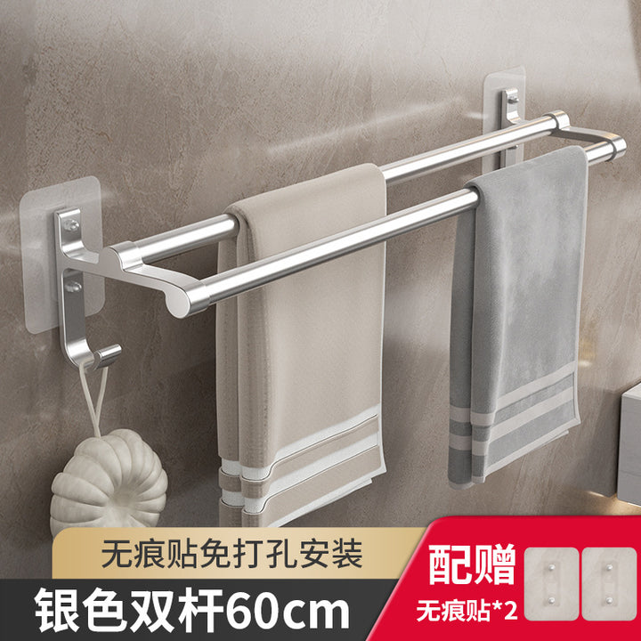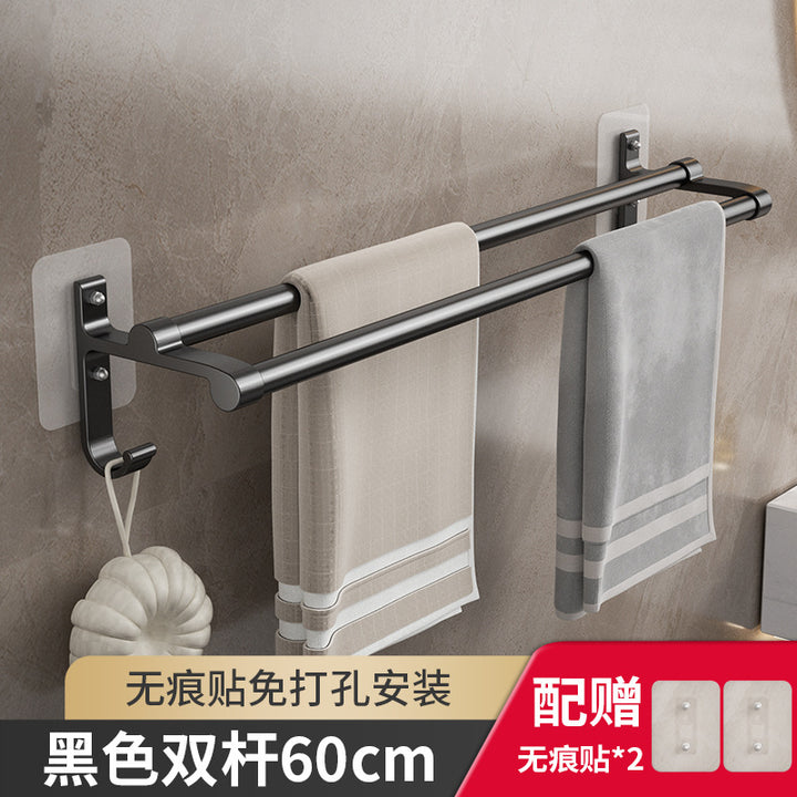 Toilet towel rack No punching Bathroom hanger Toilet hook Suction cup Self-adhesive Wall-mounted double bar Towel bar