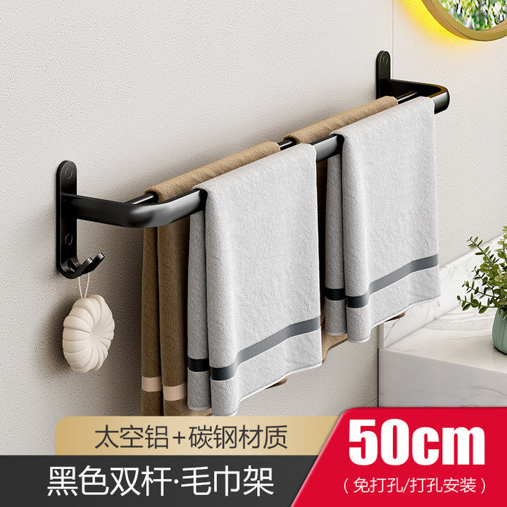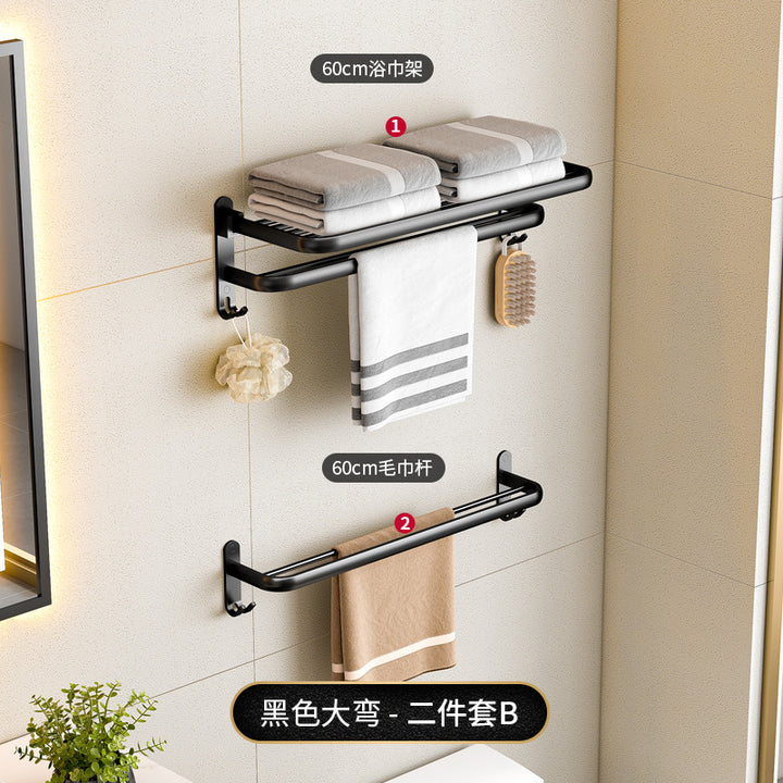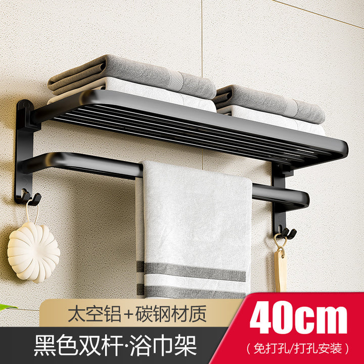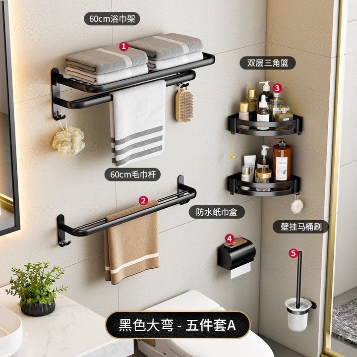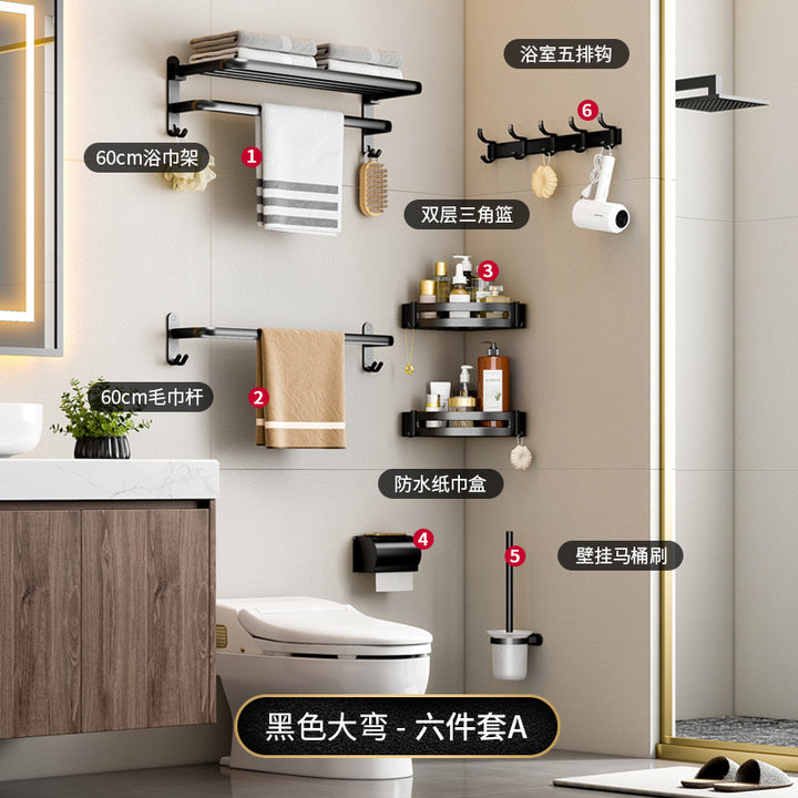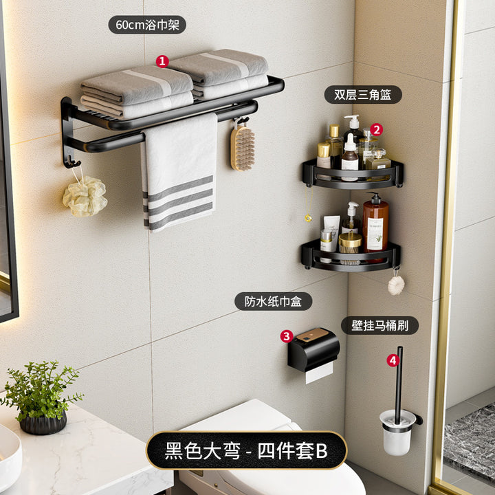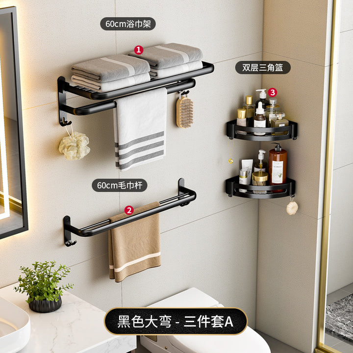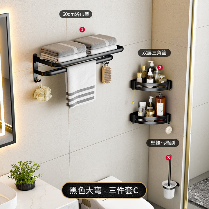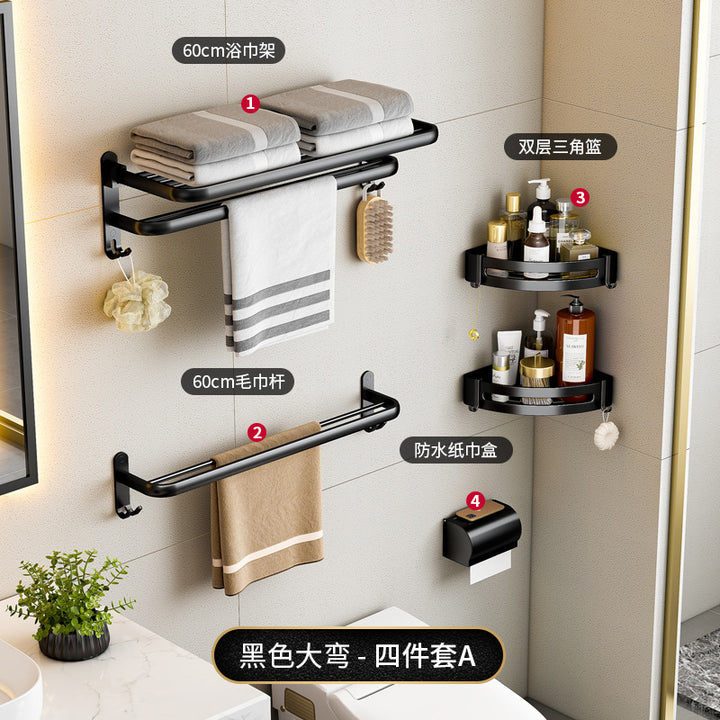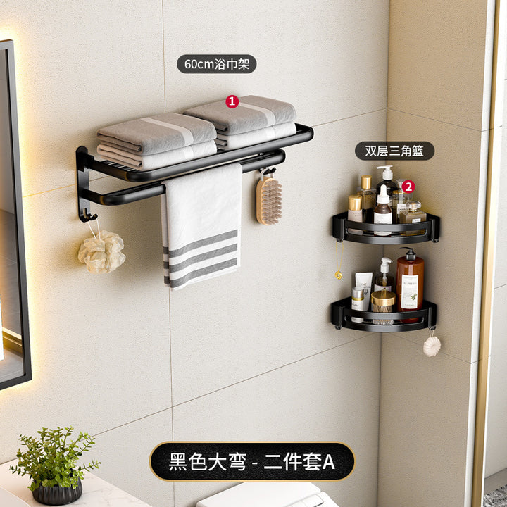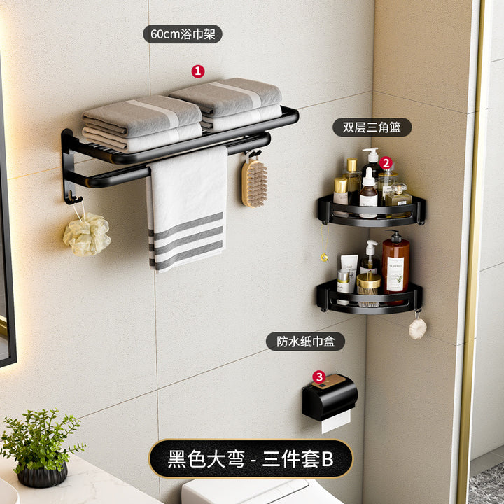 Black - 40cm folding towel holder (dual use), Black - 50cm folding towel holder (dual-use), Black - 60cm Folding Towel Holder (Dual Use), Black - 50cm towel rack (dual purpose), Black - 60cm towel rack (dual purpose), Black - Single Layer Triangle Basket (Dual Use), Black - Double Triangle Basket (Dual Use), Black - 5 rows of hooks (dual purpose), Black - Glass Toilet Brush Holder (No Punching), Black - Long Semicircular Tissue Holder (Dual Use), Black - Two-piece Set A, Black - Two-piece set B, Black - Three-piece set A, Black - Three-piece B, Black - Three-piece C, Black - Four-piece A, Black - Four-piece B, Black - Five-piece set A, Black - Six-piece Set A |