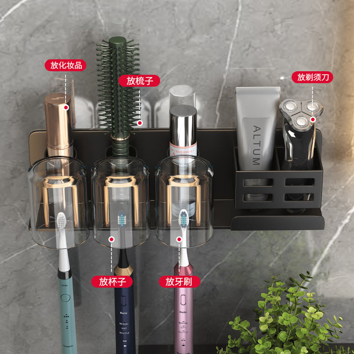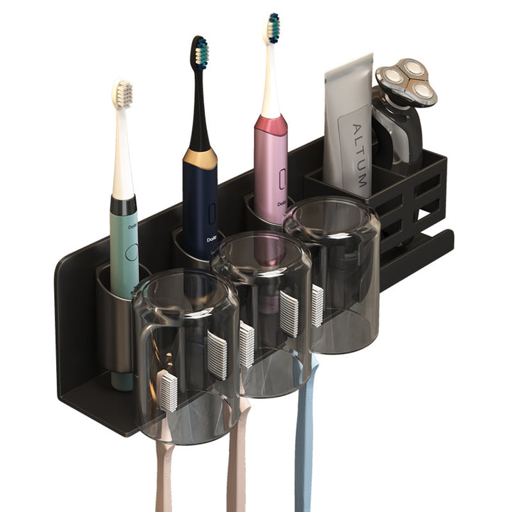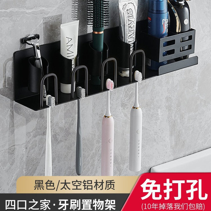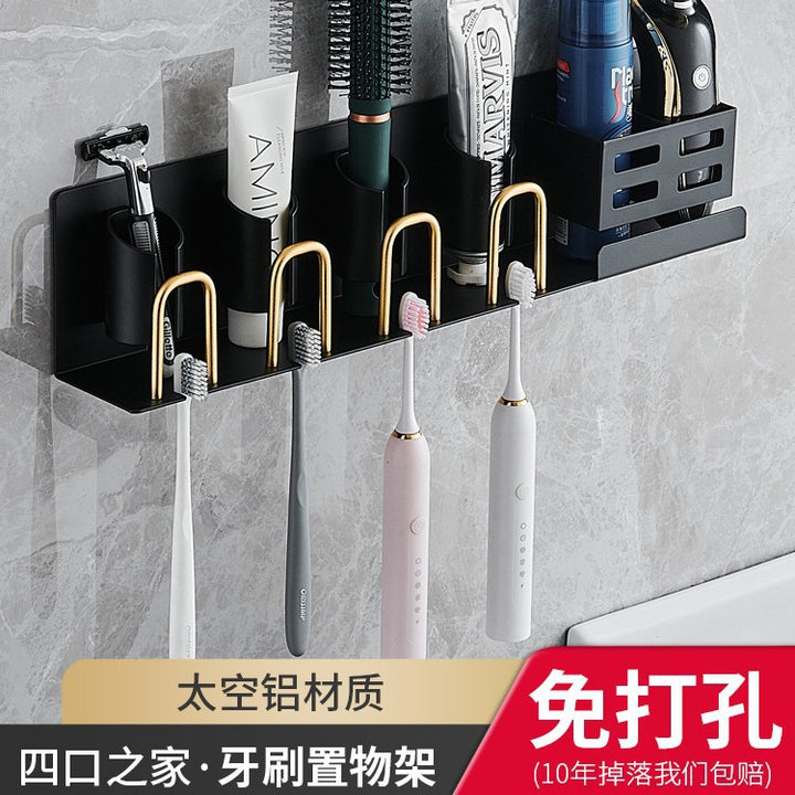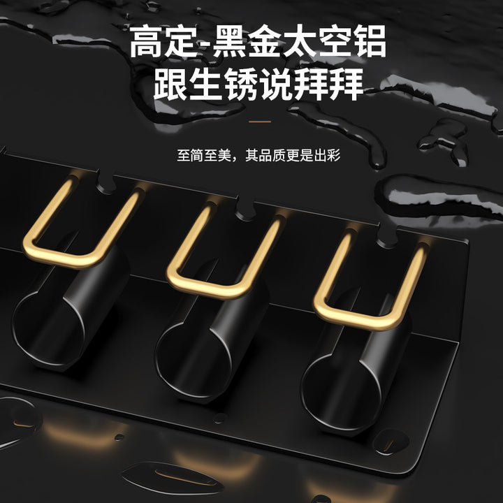 Black Space Aluminum Four-person Toothbrush Holder (No Punching), Space Aluminum Quad Toothbrush Holder - Black Gold (No Punching) |
