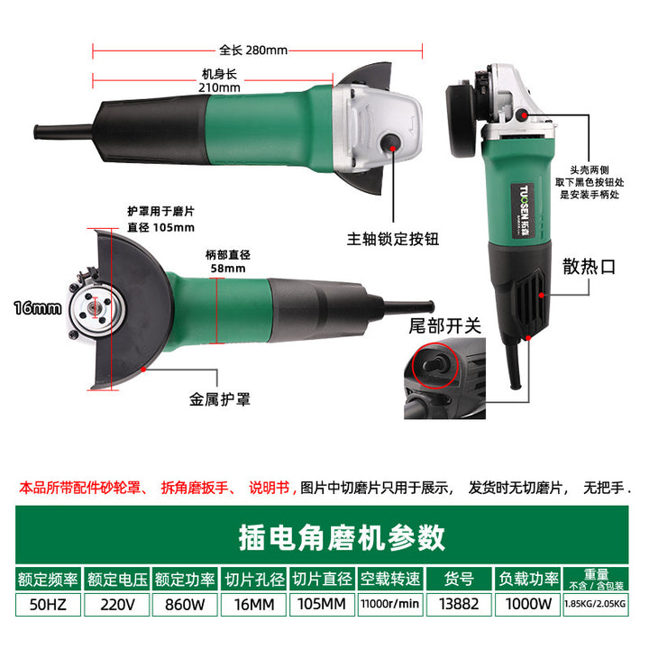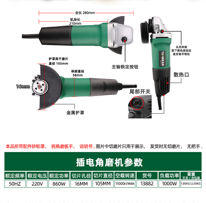 Torson Angle Grinder Plug-in Hand Grinder Grinder Hand Grinder Angle Grinder Cutter Electric Grinder Tools
