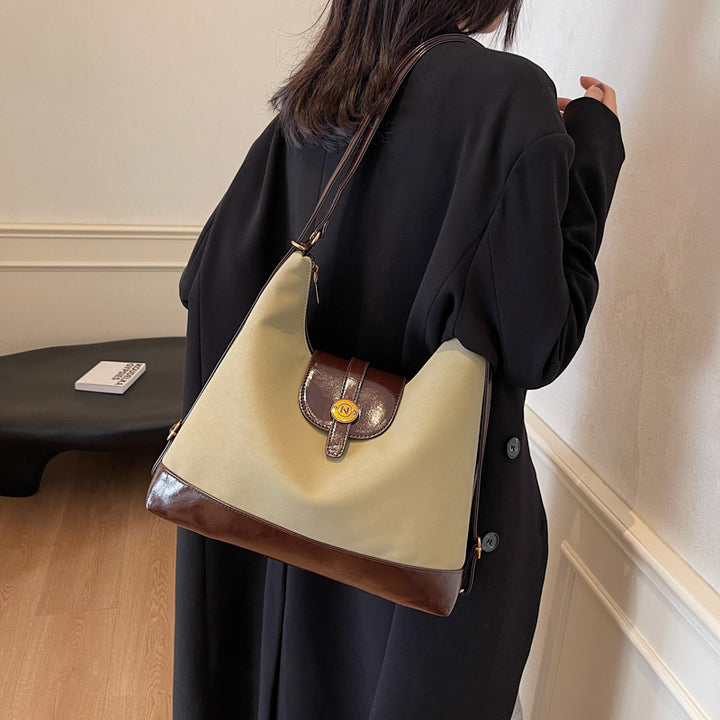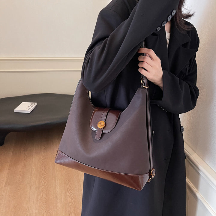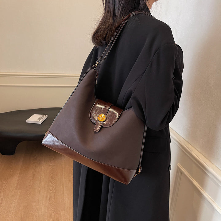 Tote bag, high-end sense, large-capacity contrasting color versatile messenger bag, exquisite handbag, fashionable commuter single-shoulder women's...