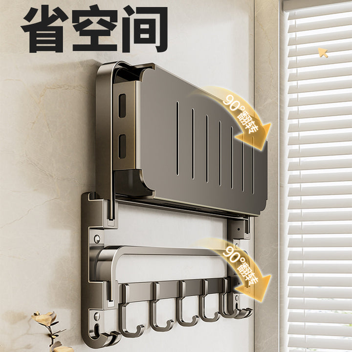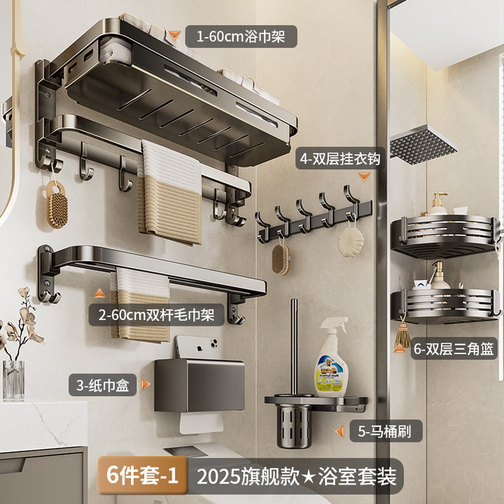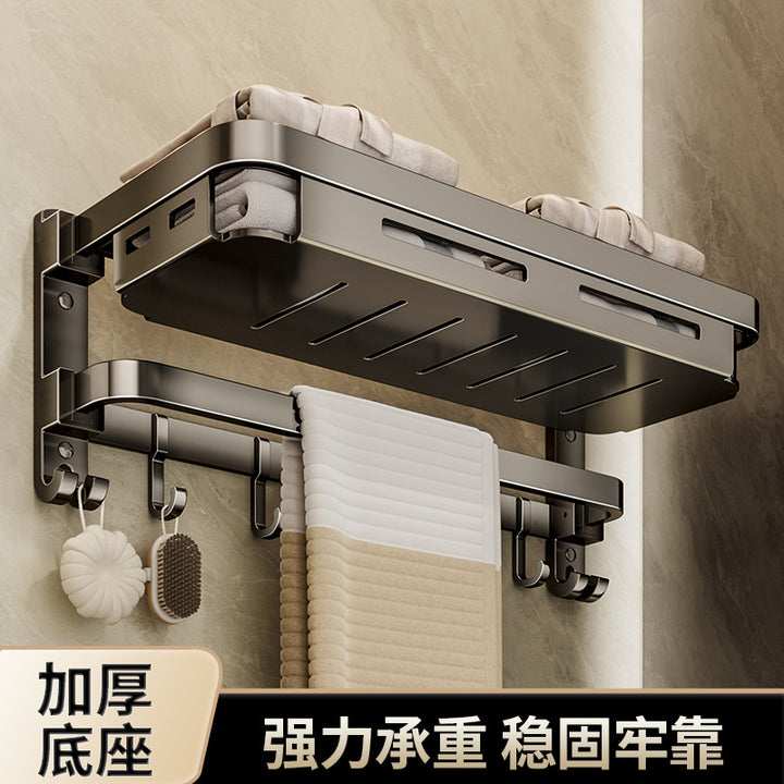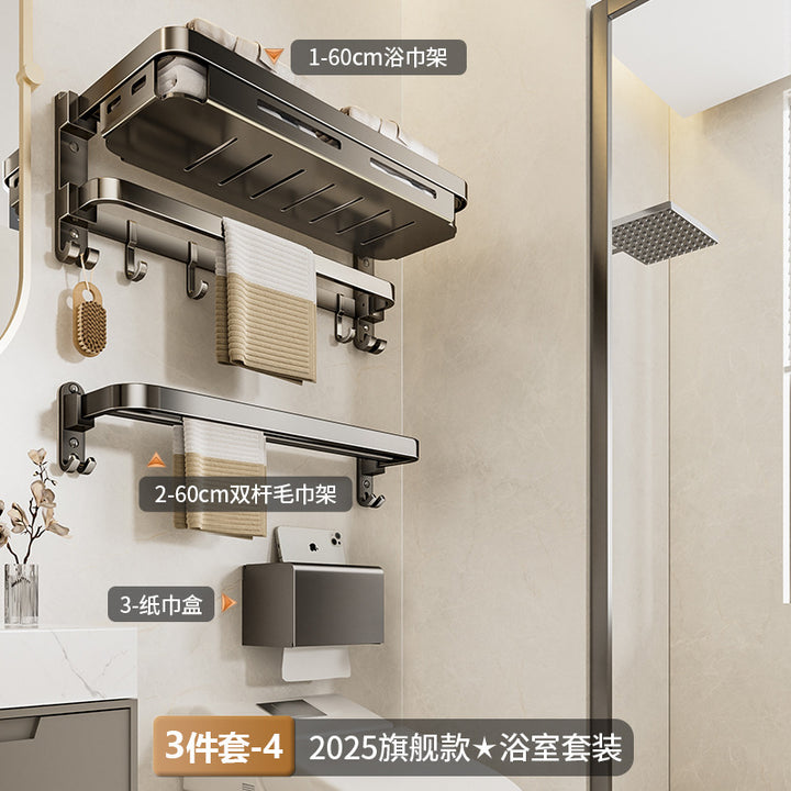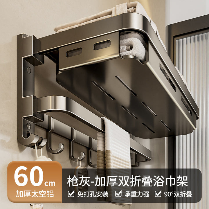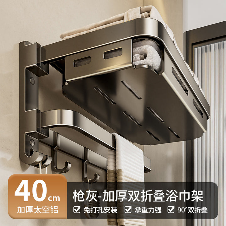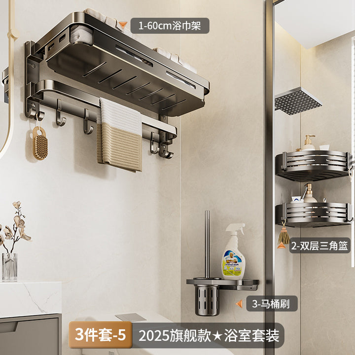 Towel rack No punching toilet Shelf Toilet storage Space aluminum bathroom net basket folding towel rack set