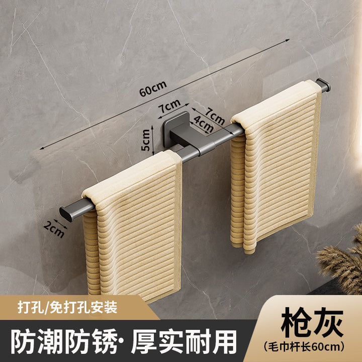 Towel rack, towel hanger, no punching, bathroom storage gun, gray towel rack, no punching, bathroom rack.