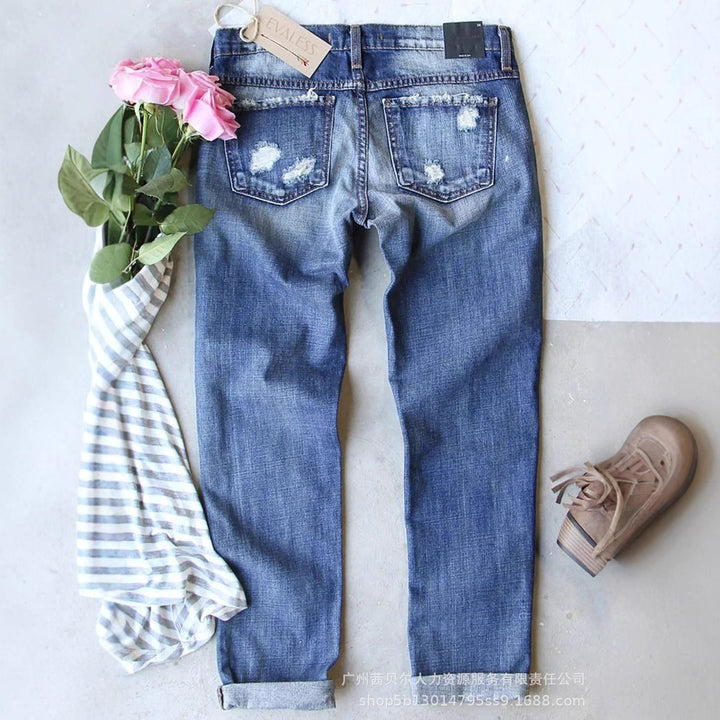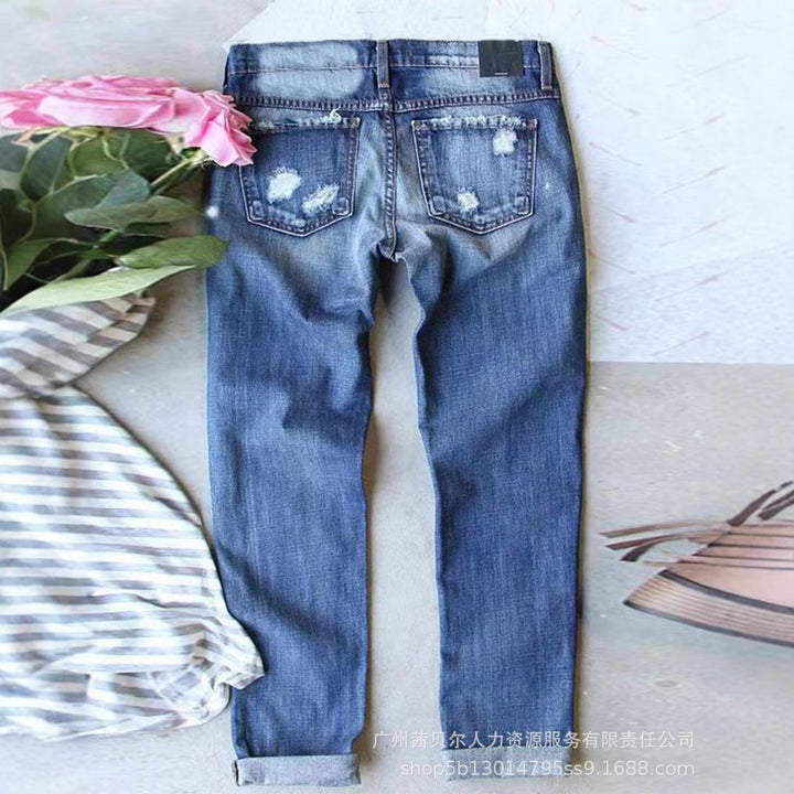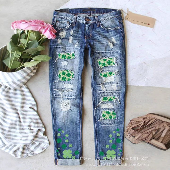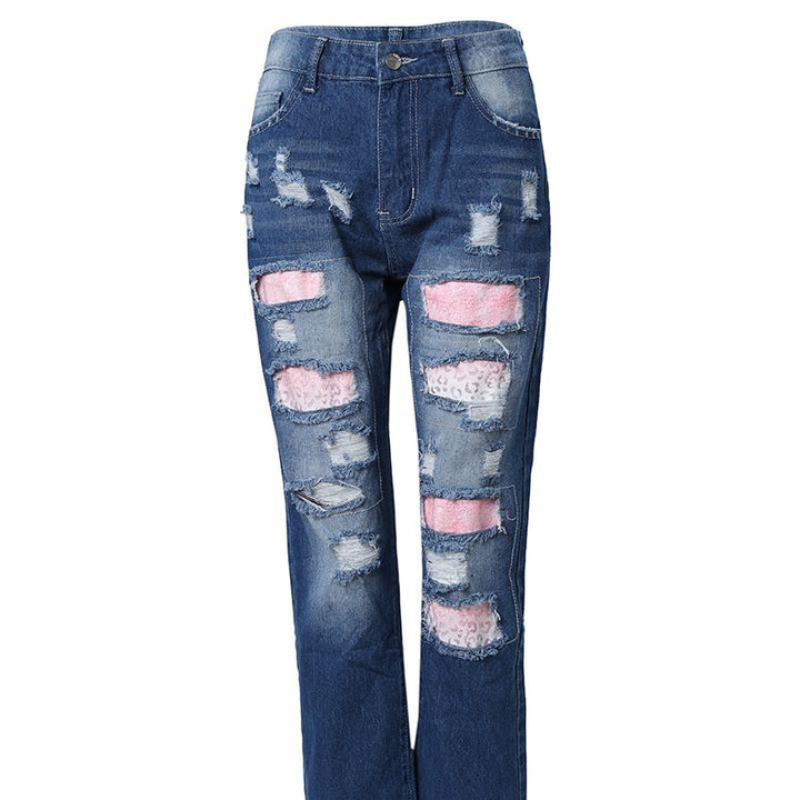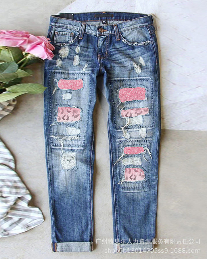 TP228291 series European and American new pink leopard print ripped printing pants casual WIS...