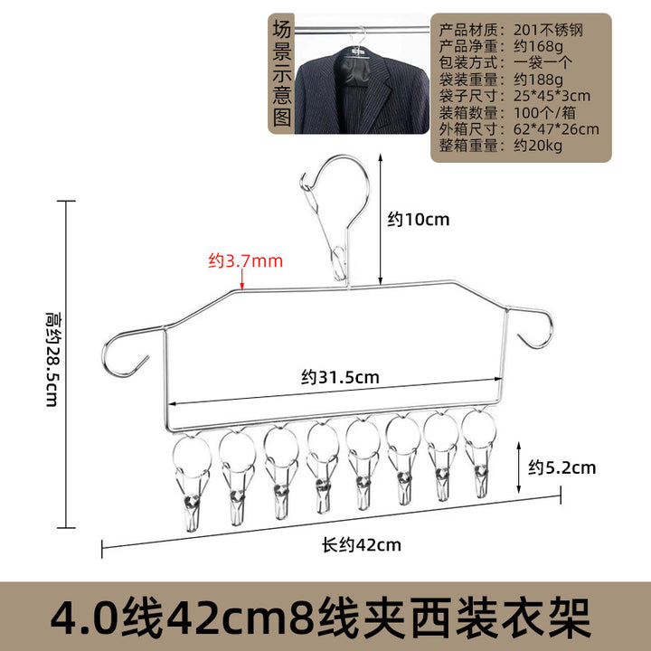 Arch bridge, four-layer pants clip frame (vinyl cap), Four-layer rotating underwear hanger (vinyl cap), Pure stainless steel S-shaped five-layer pants rack, Stainless steel S-shaped five-layer pants rack (black), 4.0 line 42cm8 line clip suit hanger, 4.0 line 42cm six wave hanger |