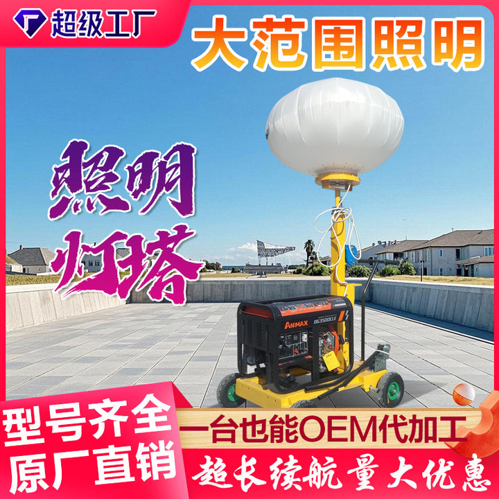 Trailer type mobile lighting truck 9 meters lifting height hand lift winch galvanized light pole 360 degree illumination